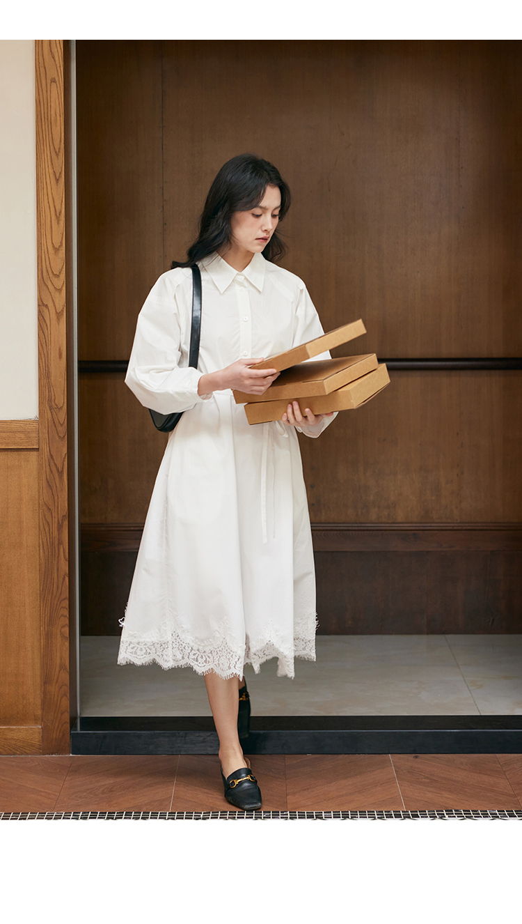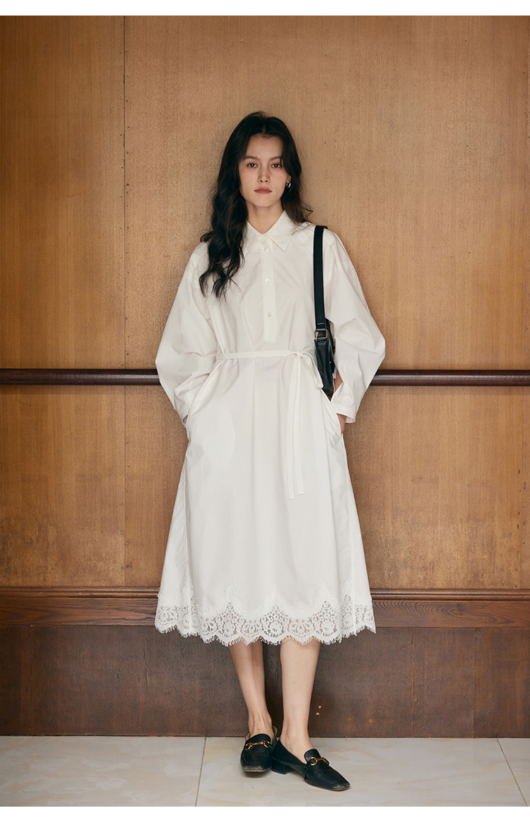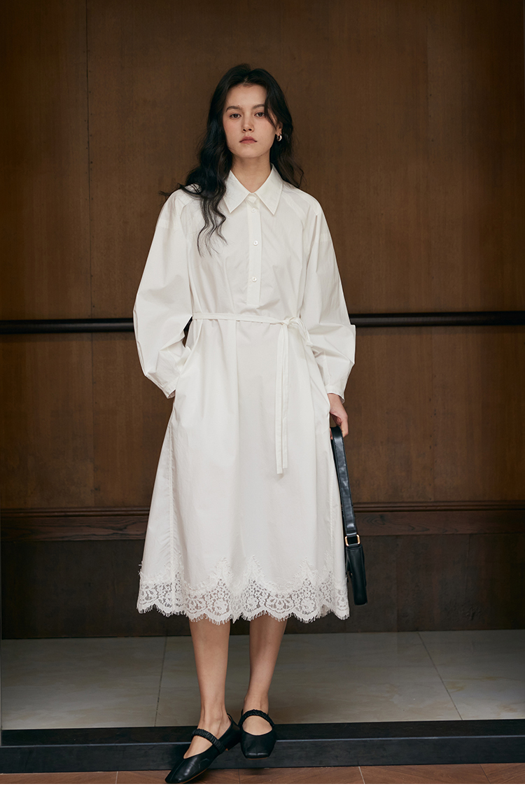 HeyDress衬衫领拼蕾丝连衣裙