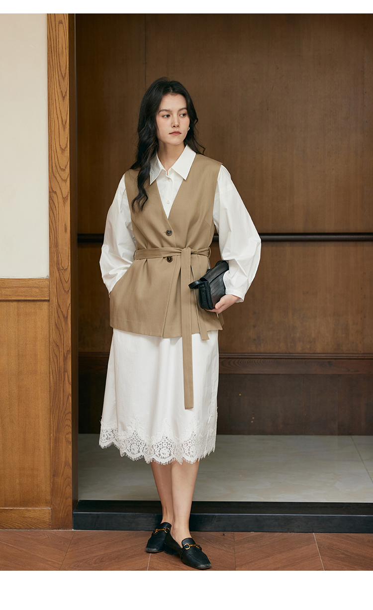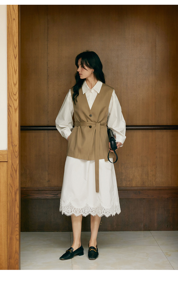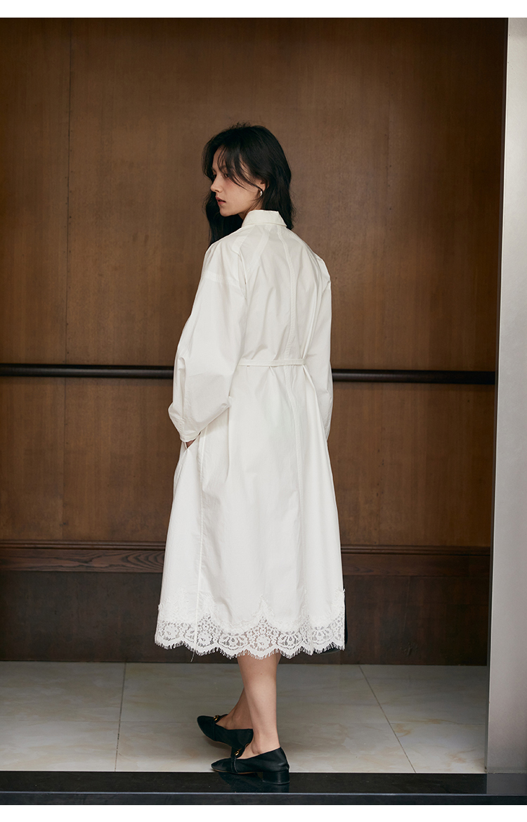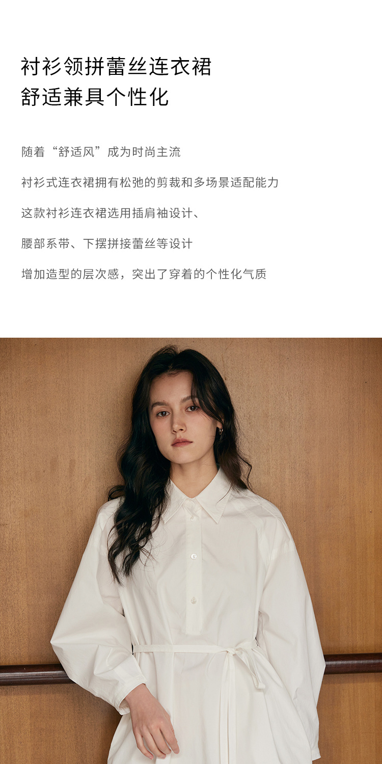 HeyDress衬衫领拼蕾丝连衣裙