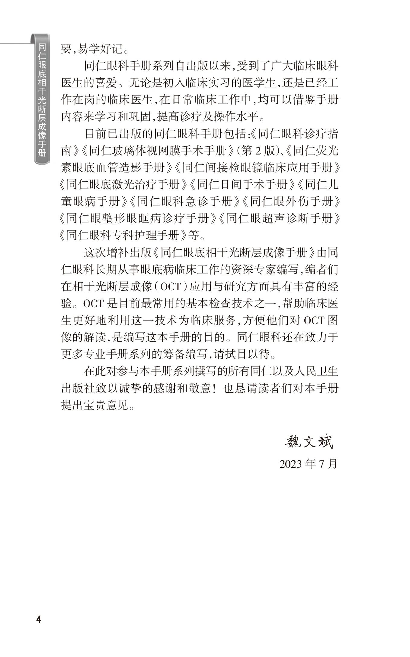 同仁眼底相干光断层成像手册(同仁眼科手册系列) 2023年10月参考书 9787117350181