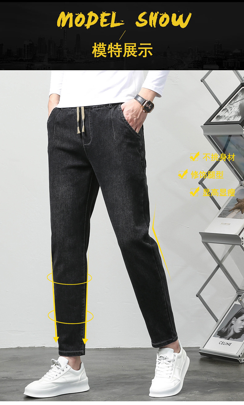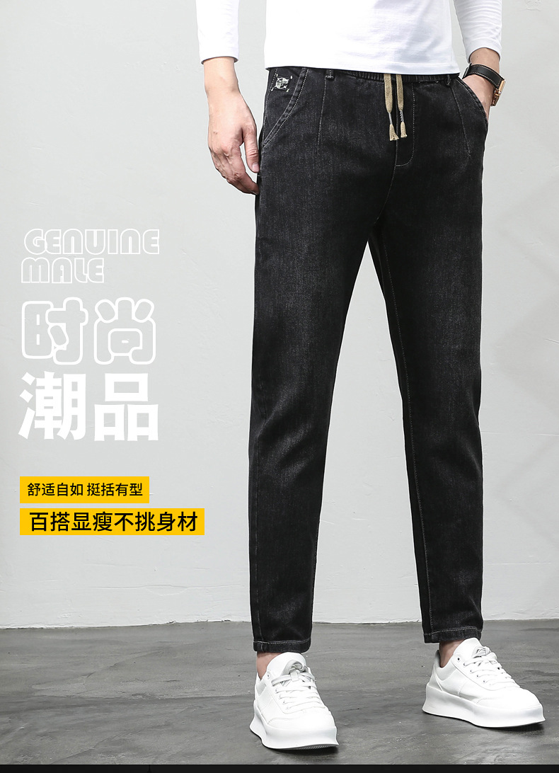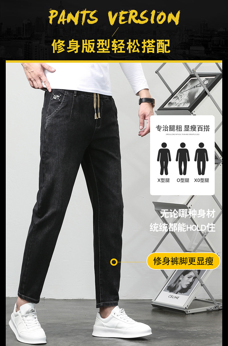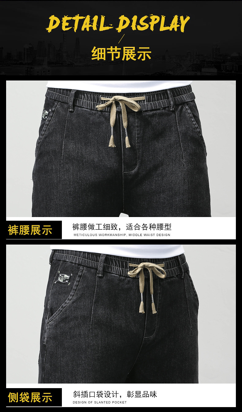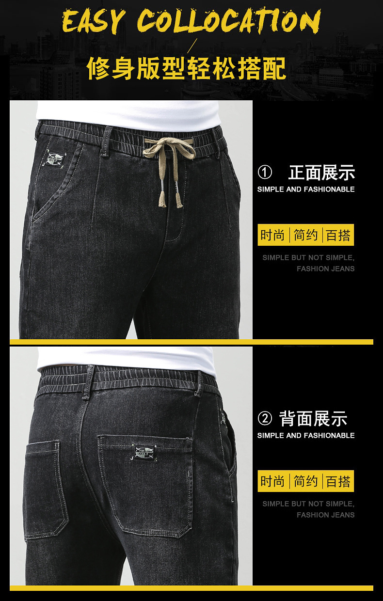 【DYG】大依优型大码男装松紧弹力腰直筒牛仔裤男抽绳百搭运动牛仔裤大码男装