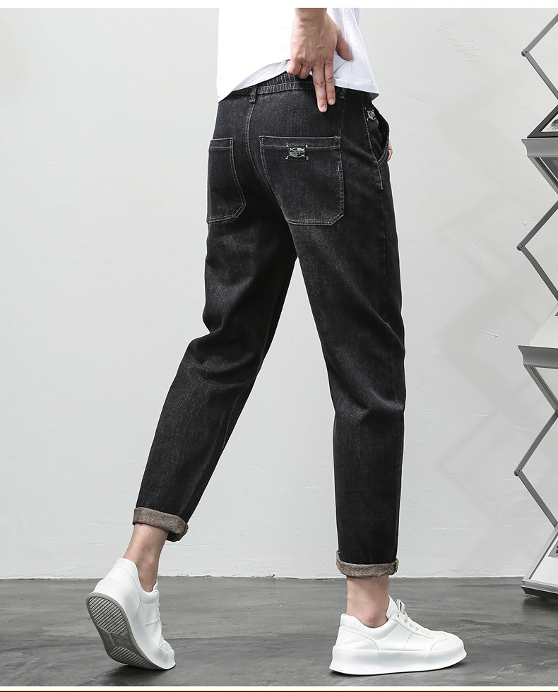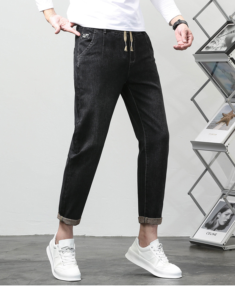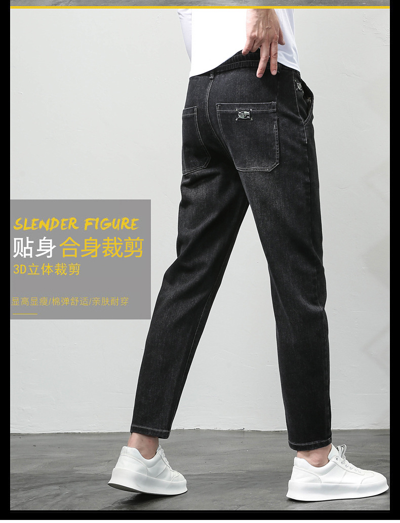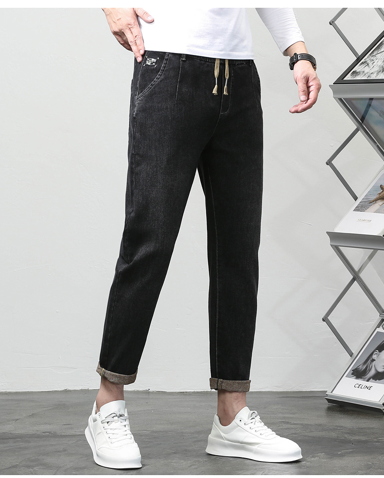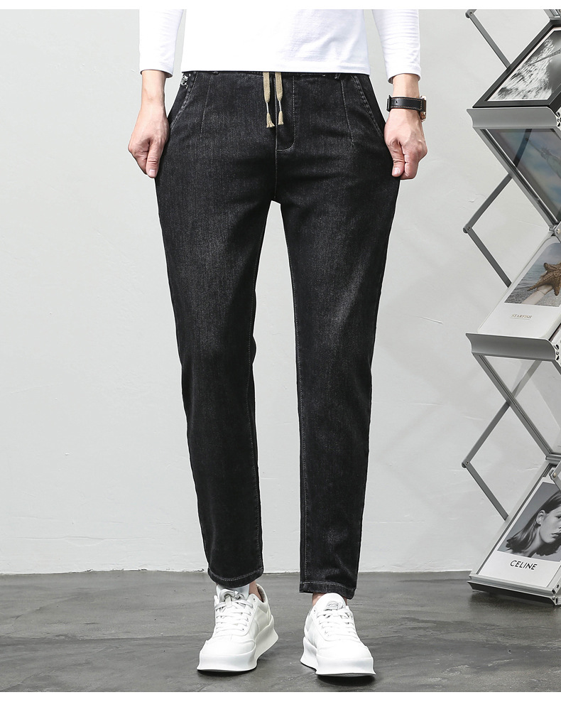 【DYG】大依优型大码男装松紧弹力腰直筒牛仔裤男抽绳百搭运动牛仔裤大码男装