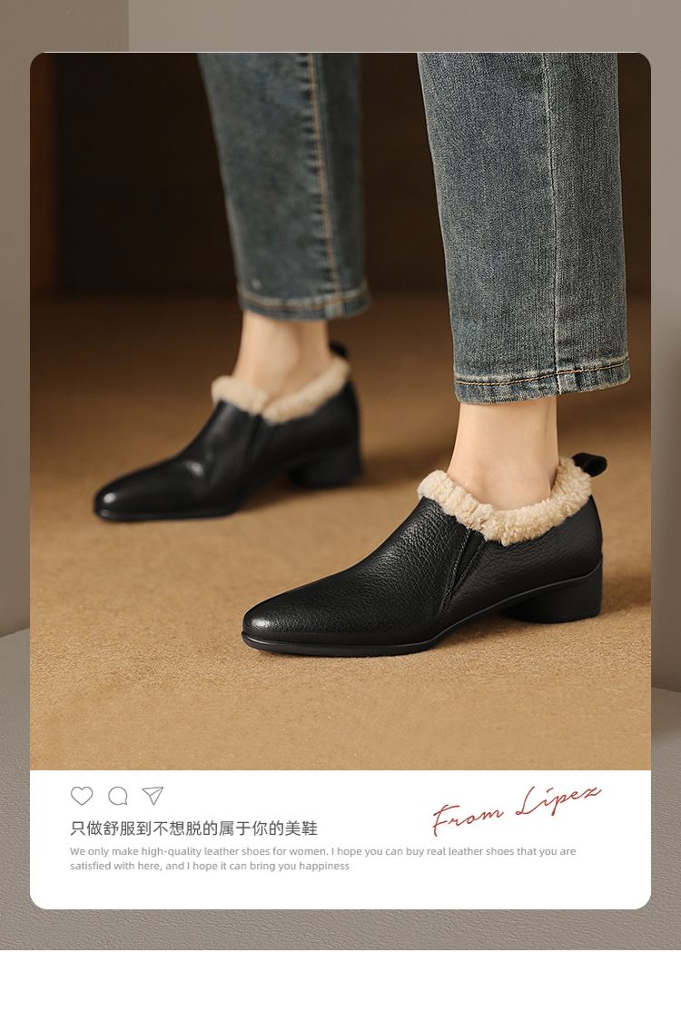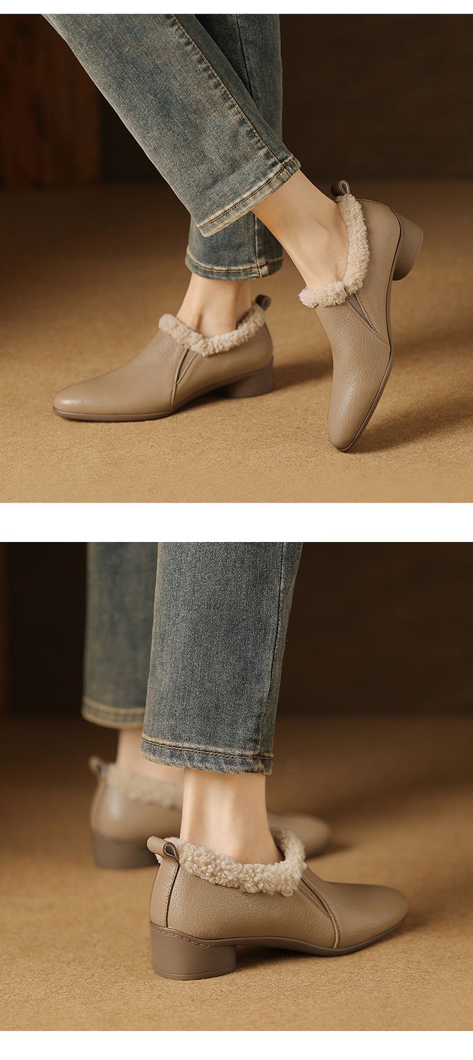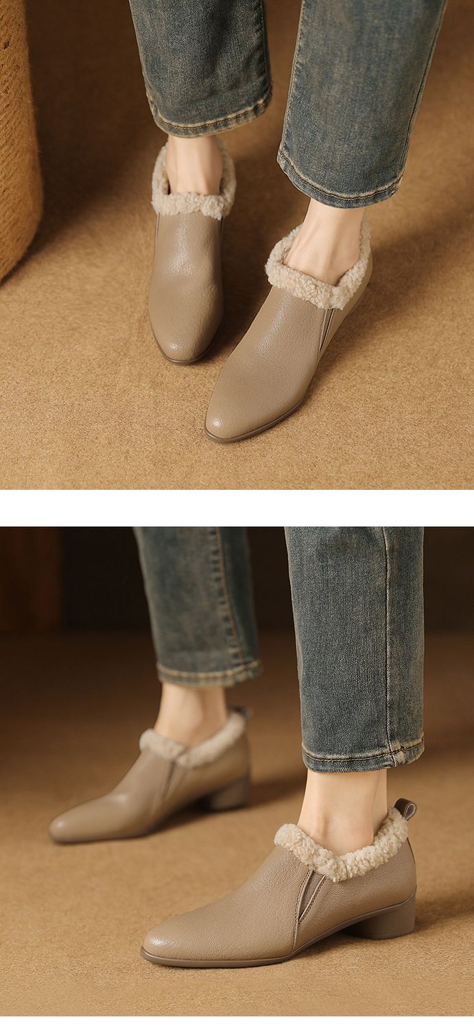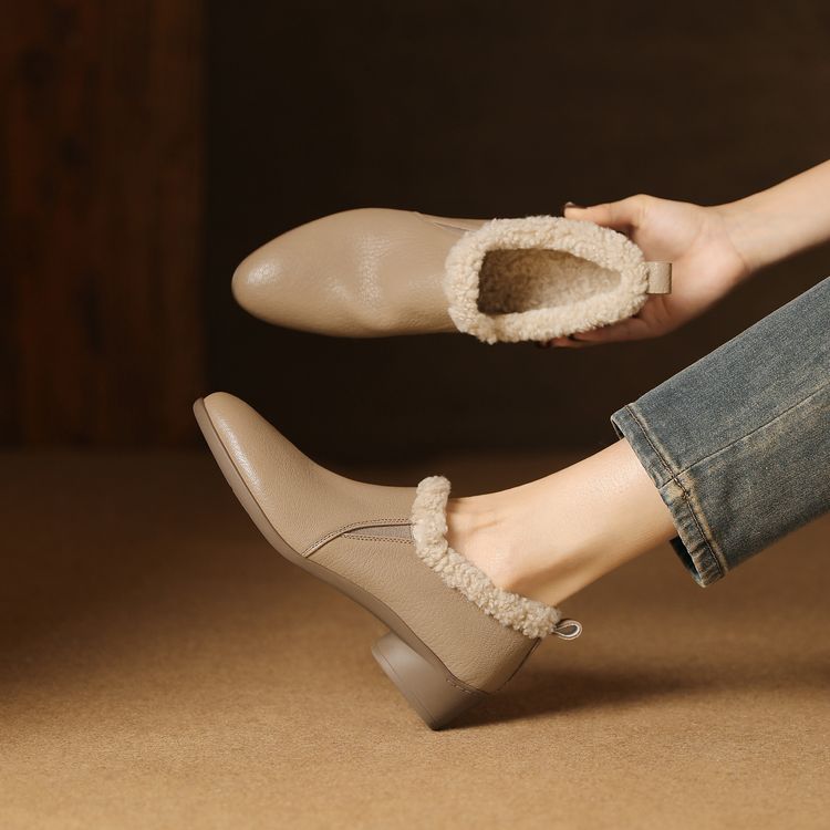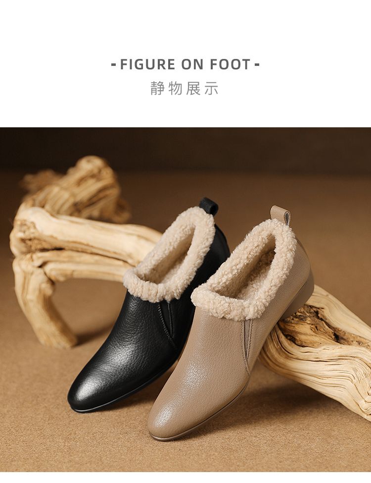 【预售5天】新款气质毛毛绒棉鞋保暖羊羔毛尖头粗跟复古短靴女冬及踝靴LG&309-1055