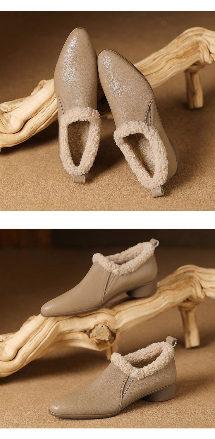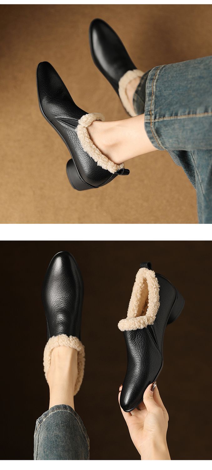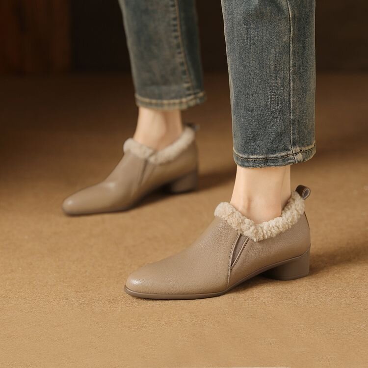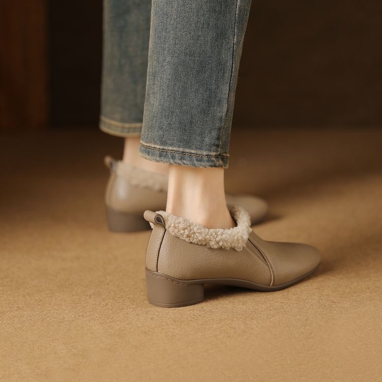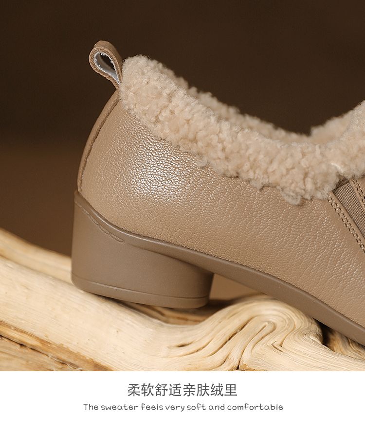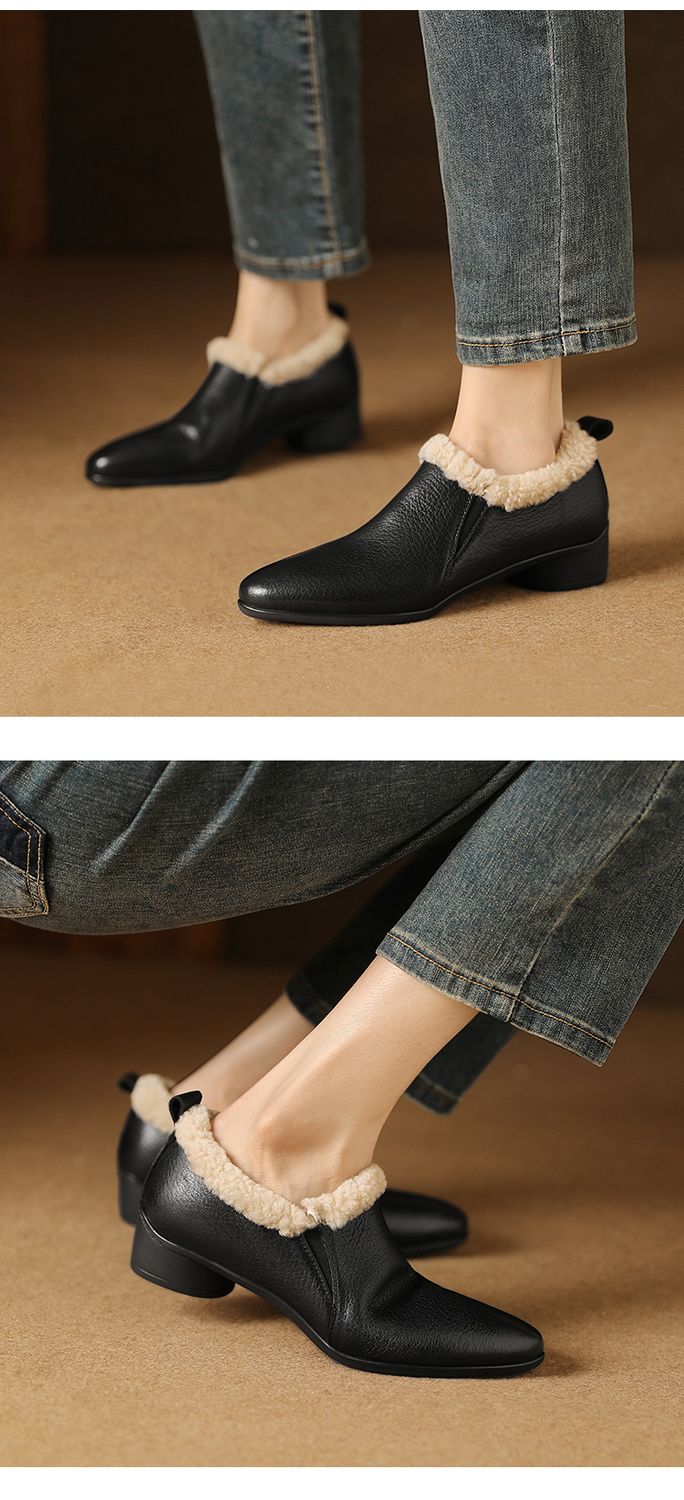 【预售5天】新款气质毛毛绒棉鞋保暖羊羔毛尖头粗跟复古短靴女冬及踝靴LG&309-1055