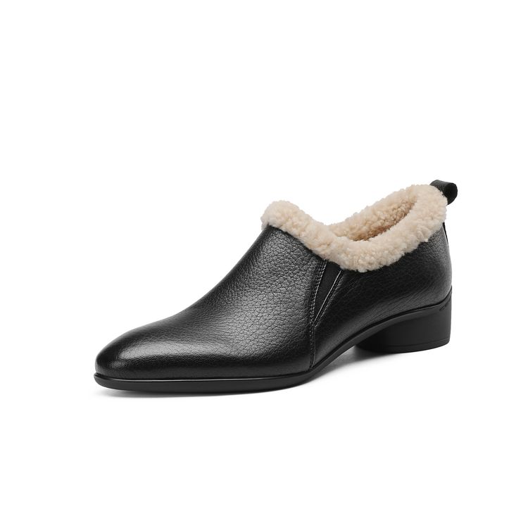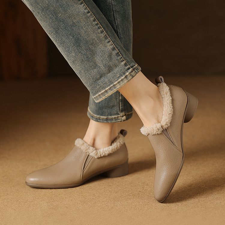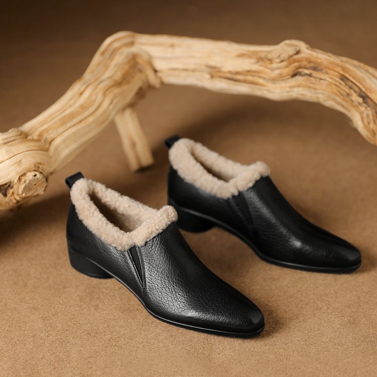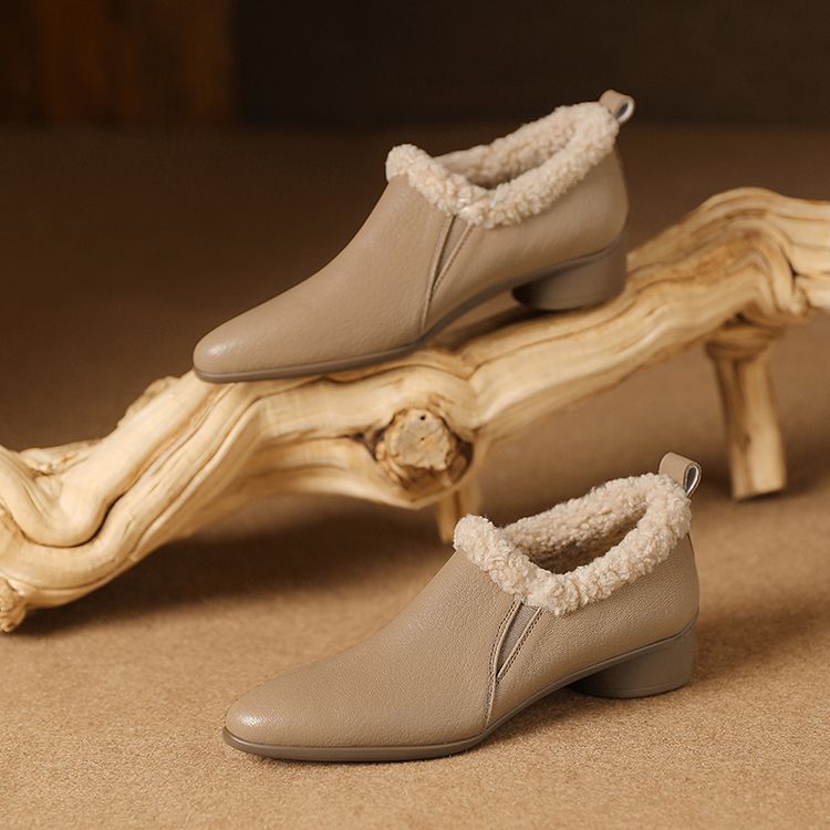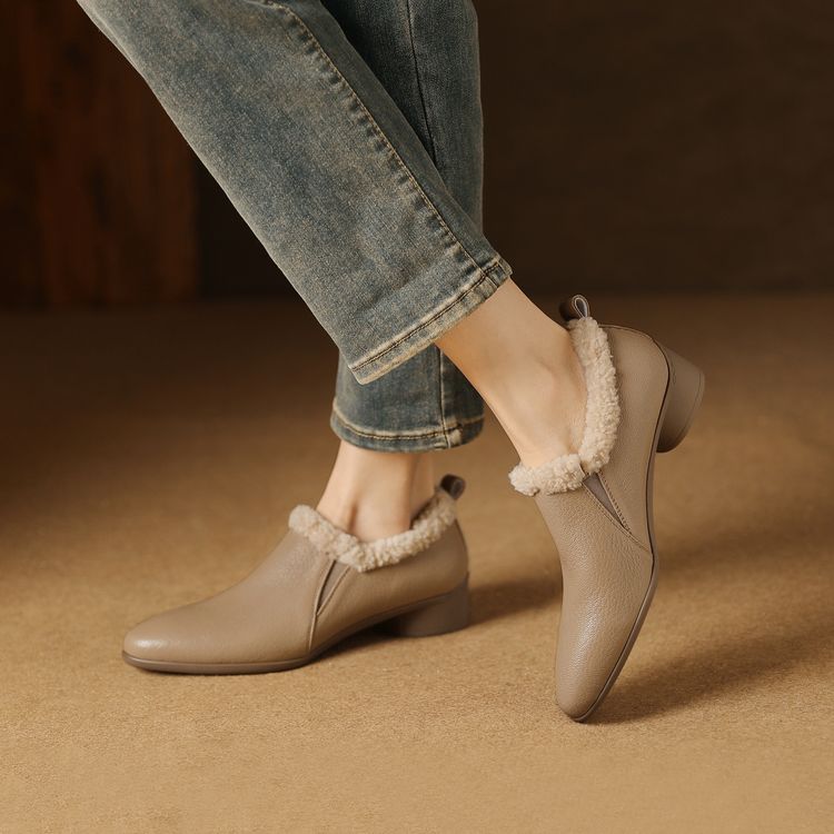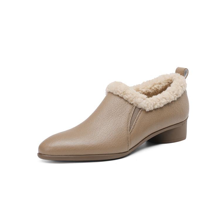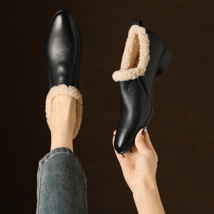 【预售5天】新款气质毛毛绒棉鞋保暖羊羔毛尖头粗跟复古短靴女冬及踝靴LG&309-1055