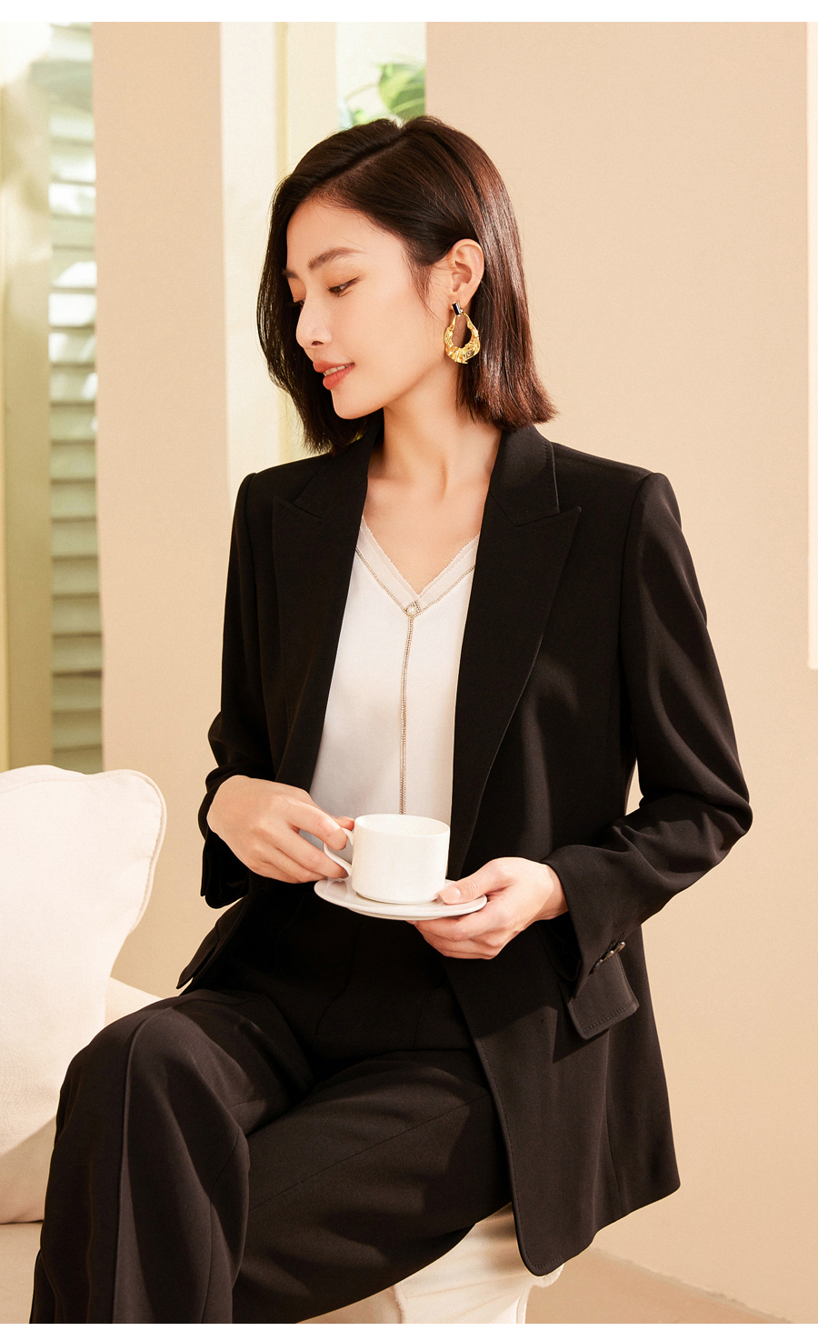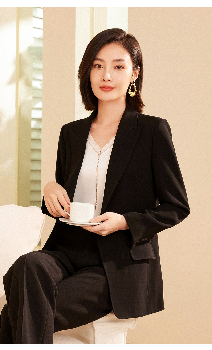 乔万尼时尚通勤轻职场一粒扣正肩收腰显瘦西装外套ET3B712501