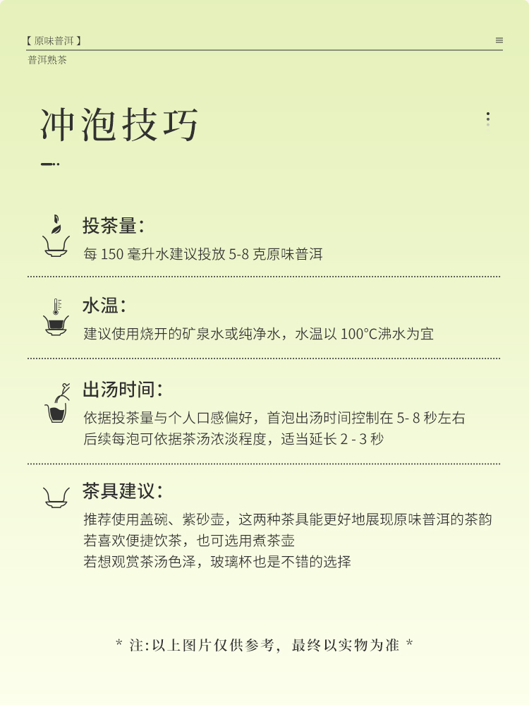 【七彩云南品味系列普洱熟茶】源自高山生态茶园 原叶自然天成 匠心工艺精制而成 每一杯茶都蕴含精心雕琢的韵致 多种规格任选