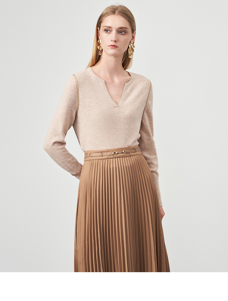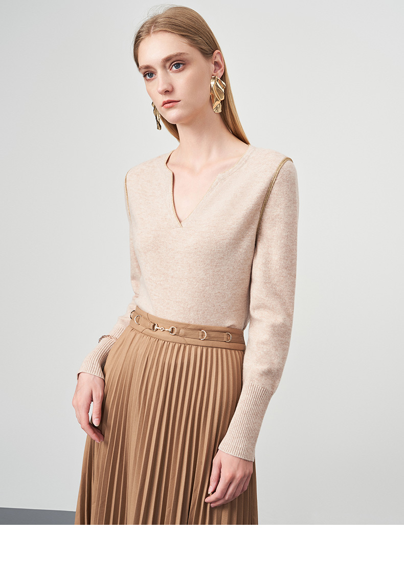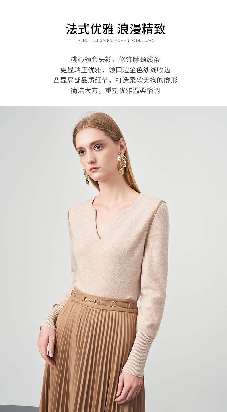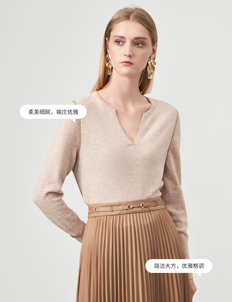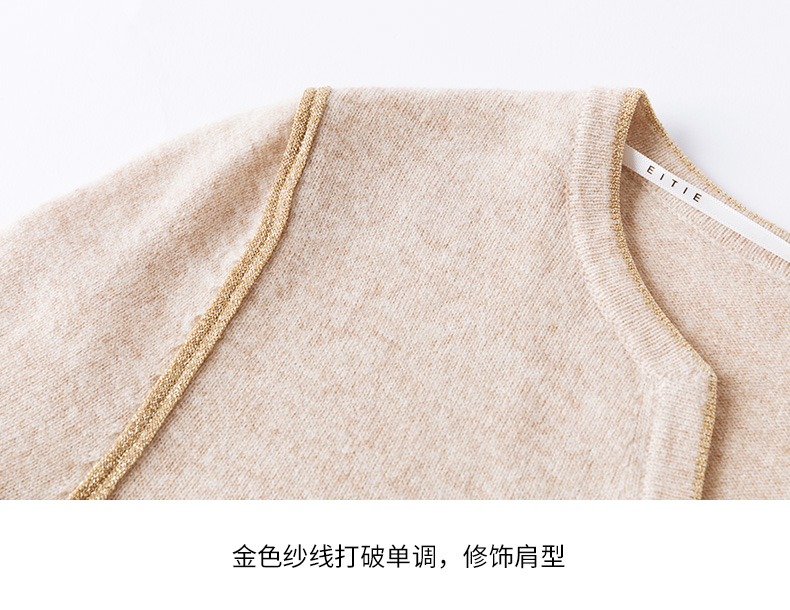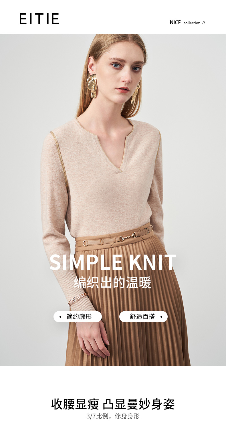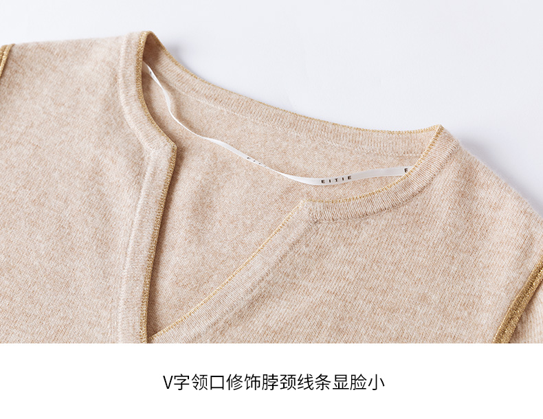 EITIE爱特爱冬季新款时尚气质V领简约纯色针织衫上衣6801518
