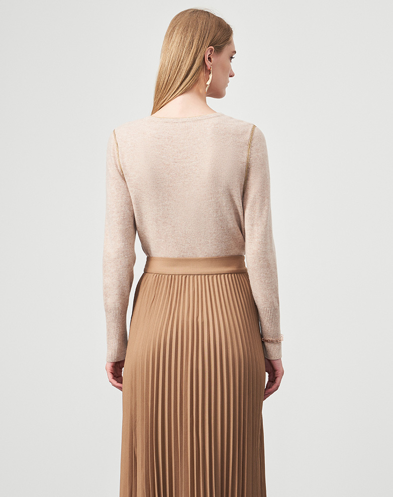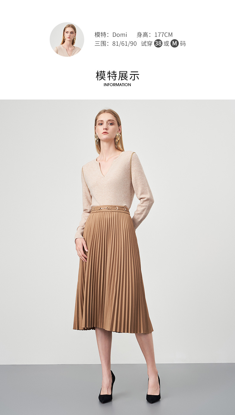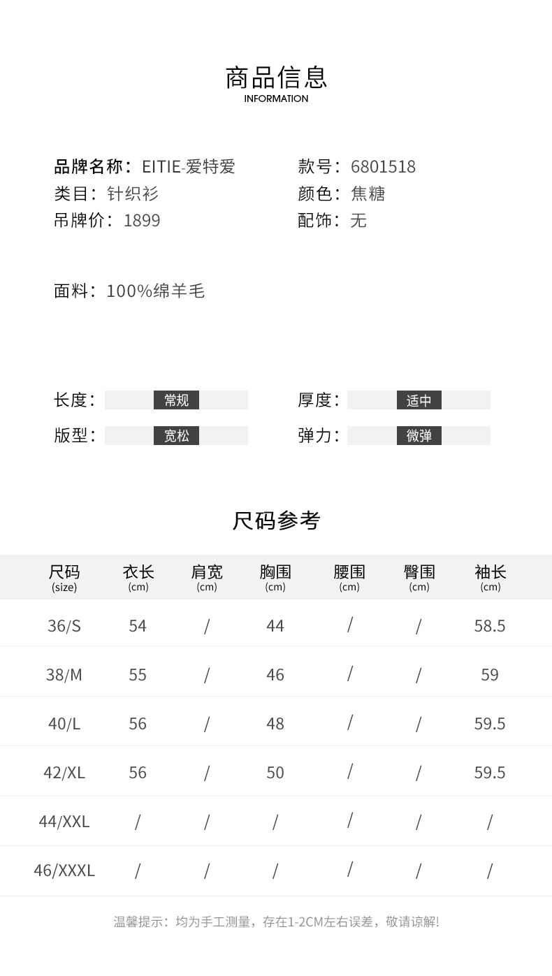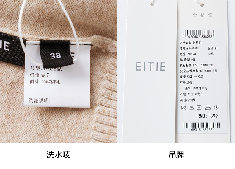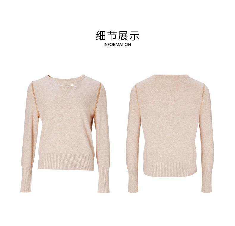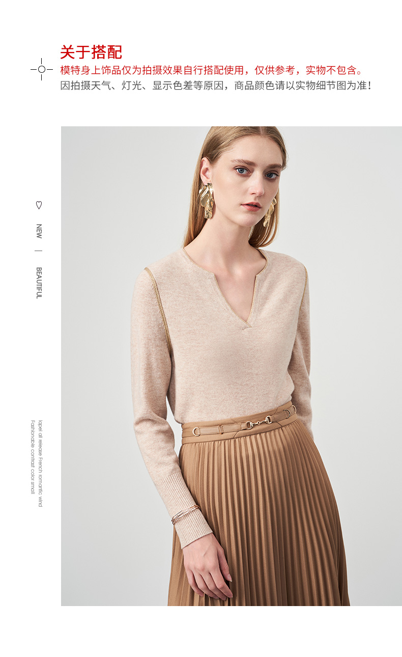 EITIE爱特爱冬季新款时尚气质V领简约纯色针织衫上衣6801518