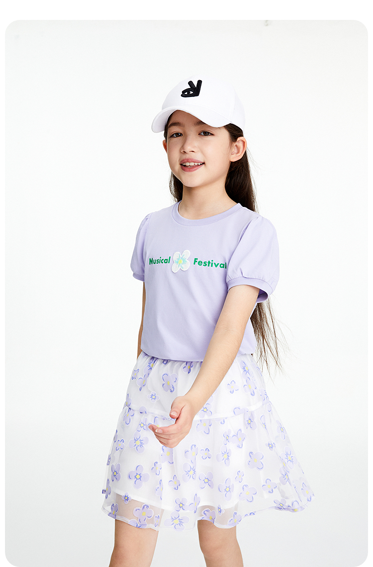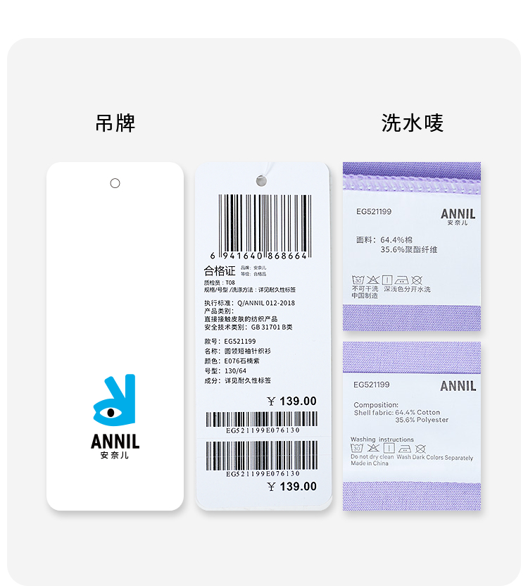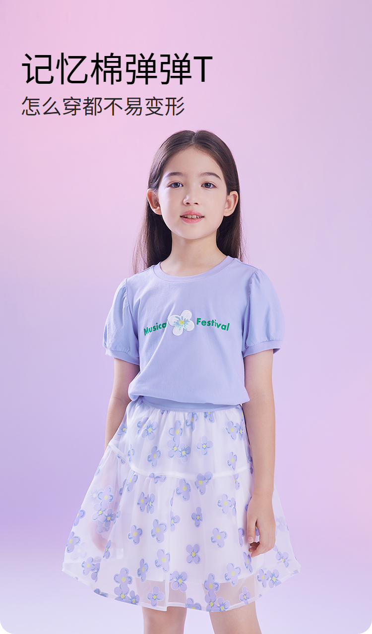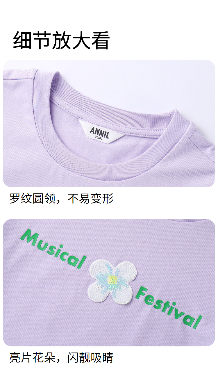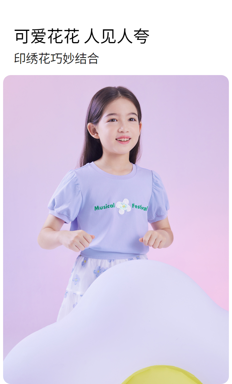 女童SORONA圆领短袖针织衫夏季新款安奈儿童装EG521199