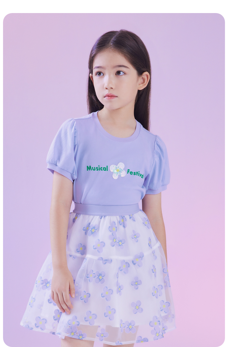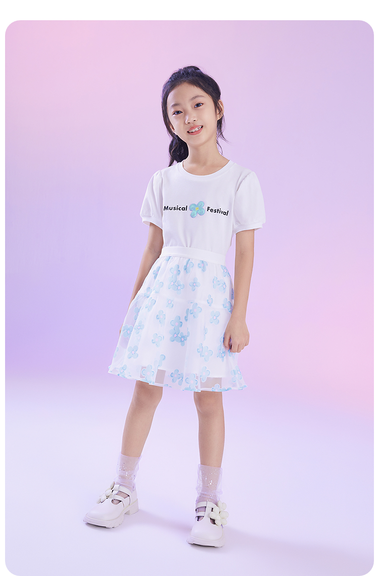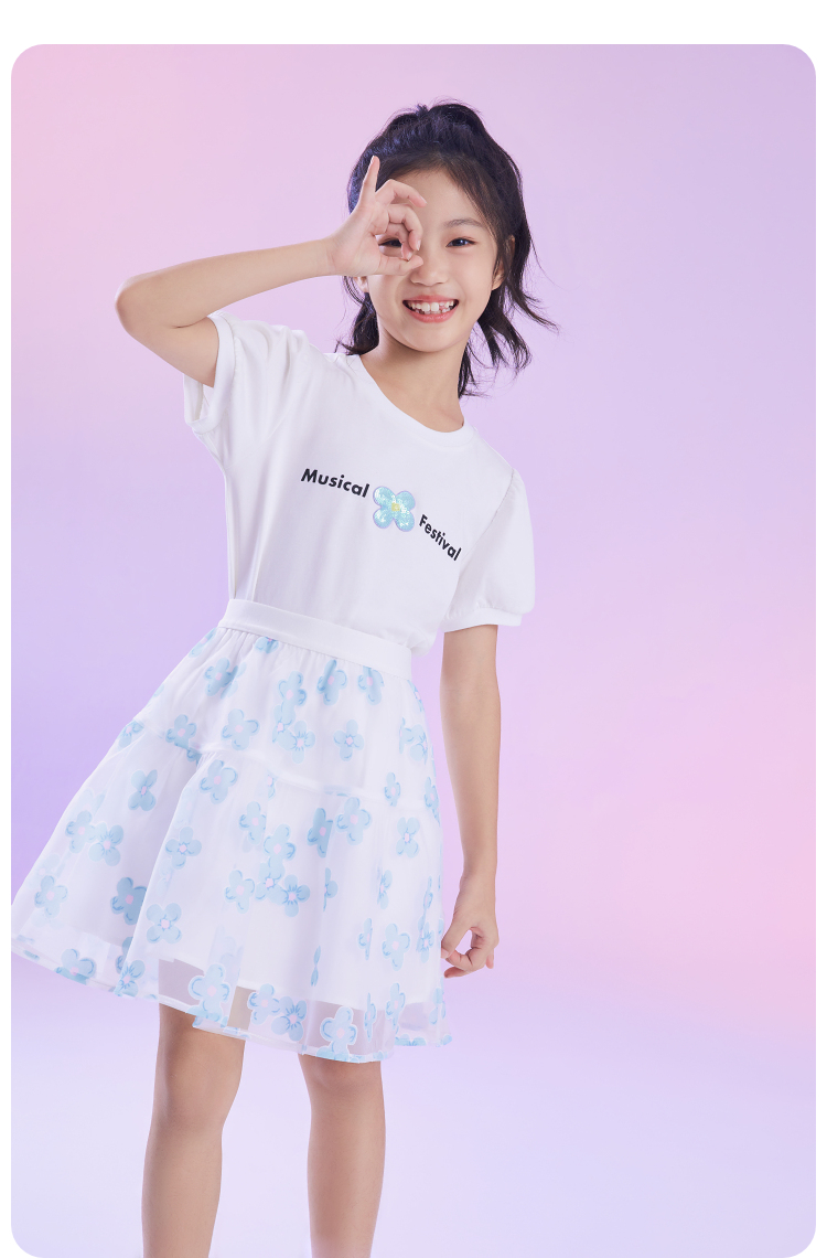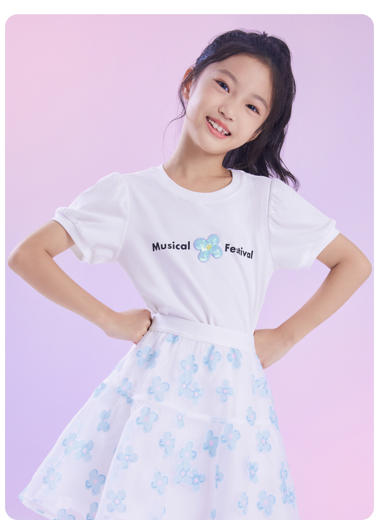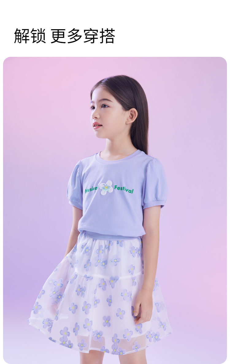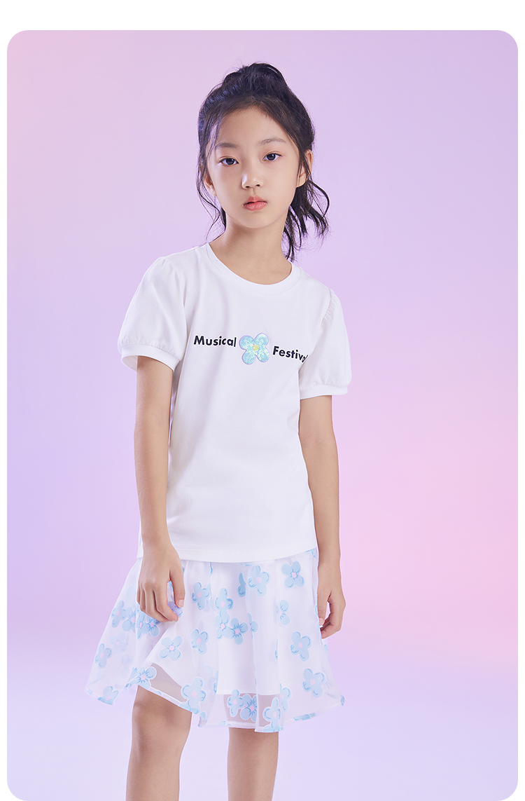 女童SORONA圆领短袖针织衫夏季新款安奈儿童装EG521199