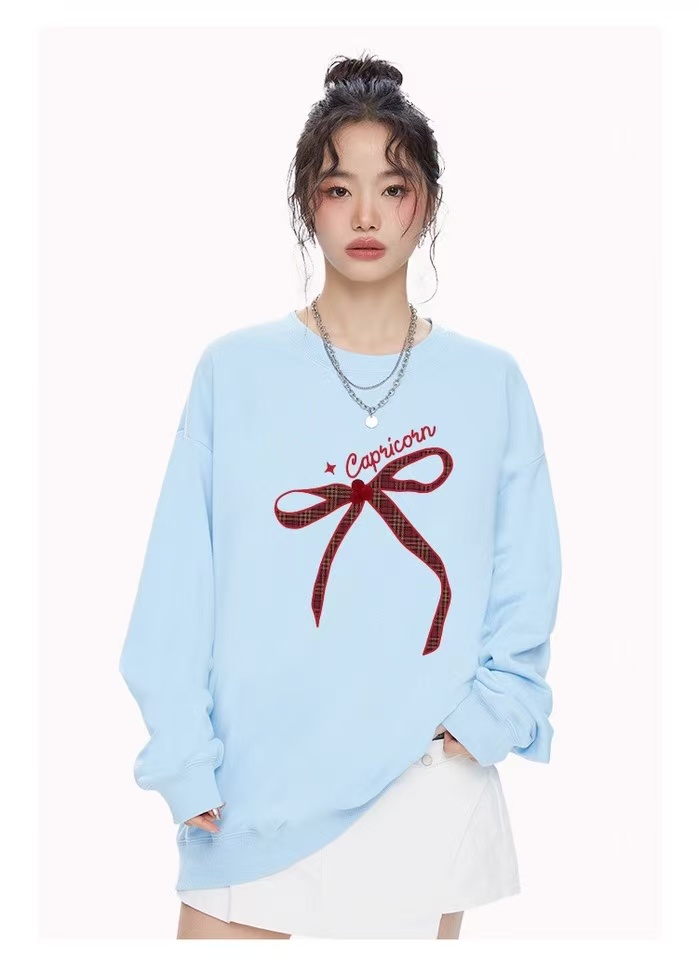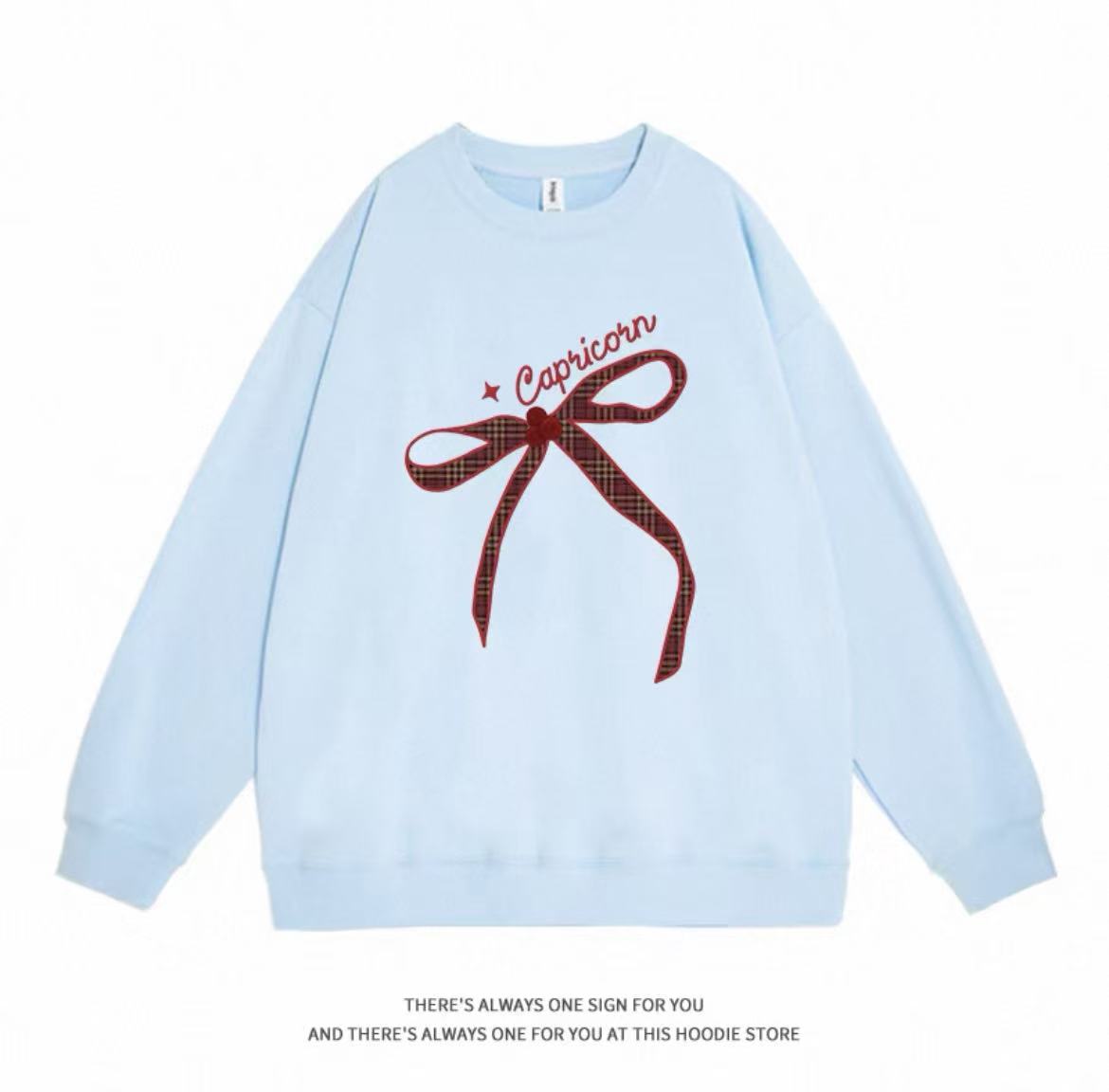 🔥🔥【潮牌卫衣】圆领牛奶绒~韩式蝴蝶结字母宽松加绒卫衣-喜出