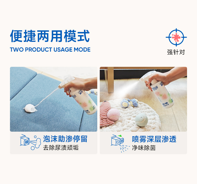 【新品上市】里兜宠物强力去渍除味泡泡喷雾去污渍免水洗猫狗除臭