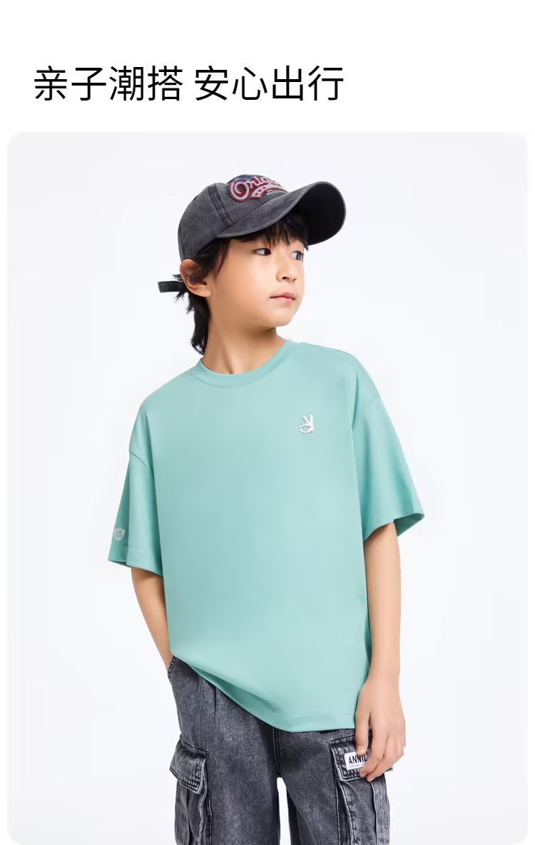 【抗菌防汗臭】【实体店同款】男女童100%纯棉凉感短袖T恤亲子装安奈儿童装AM421872