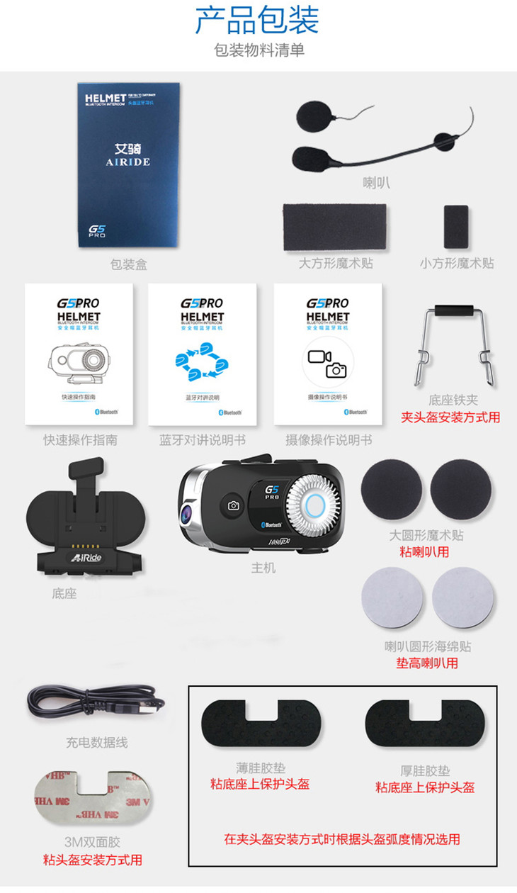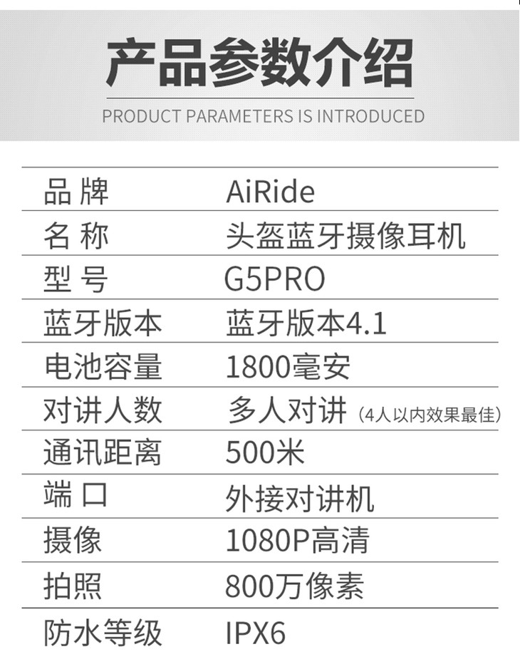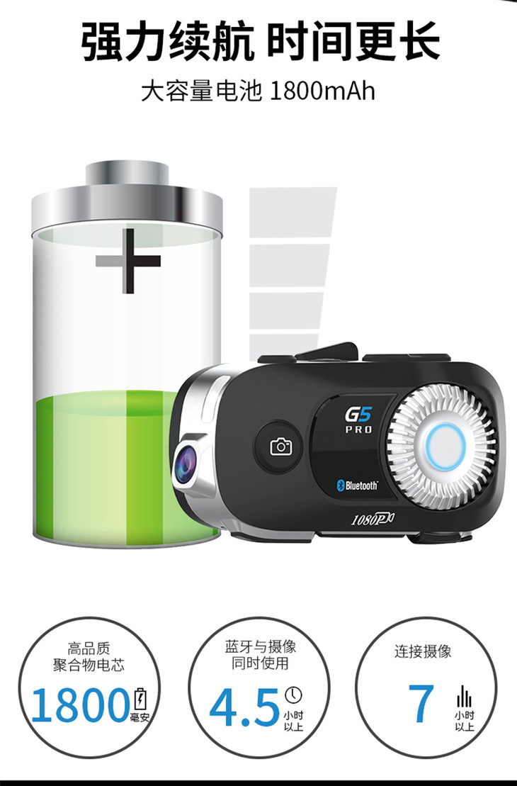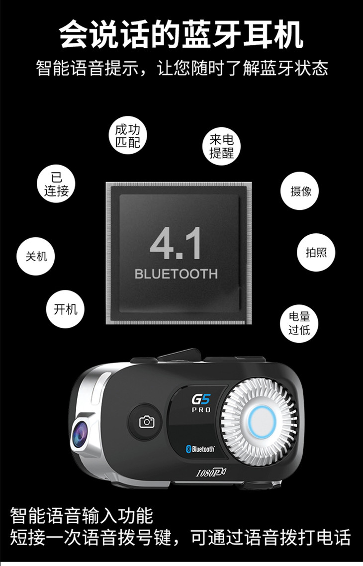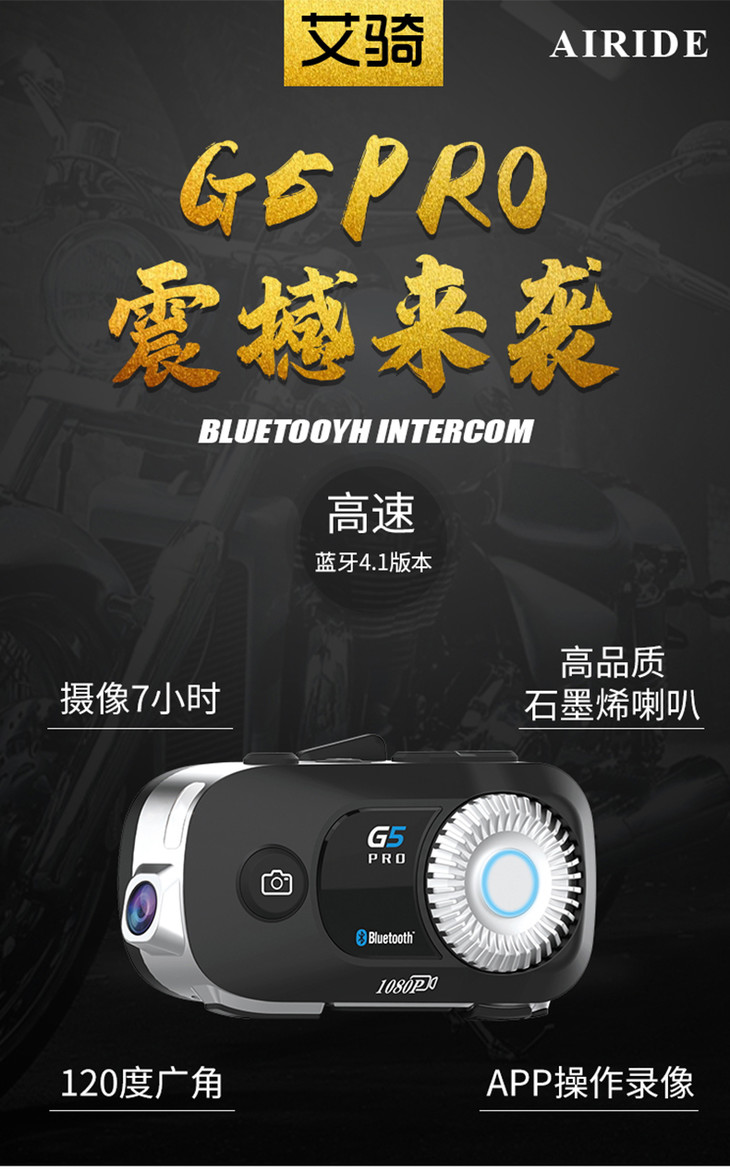 AiRide艾骑G5 PRO升级版蓝牙耳机摄像机内置防水一体机