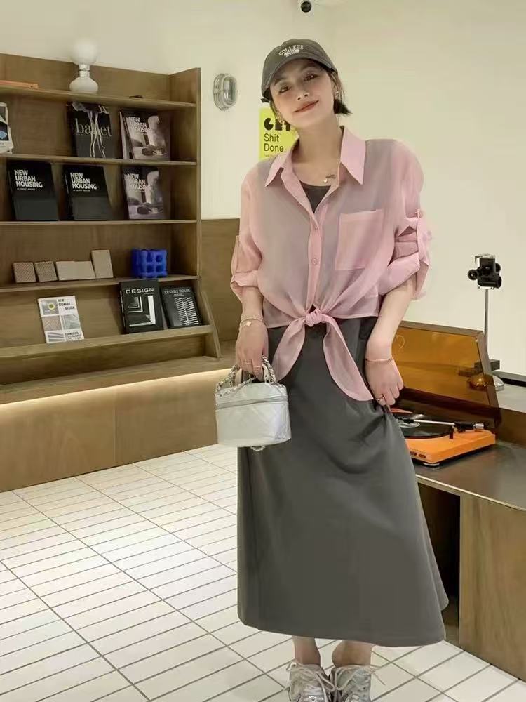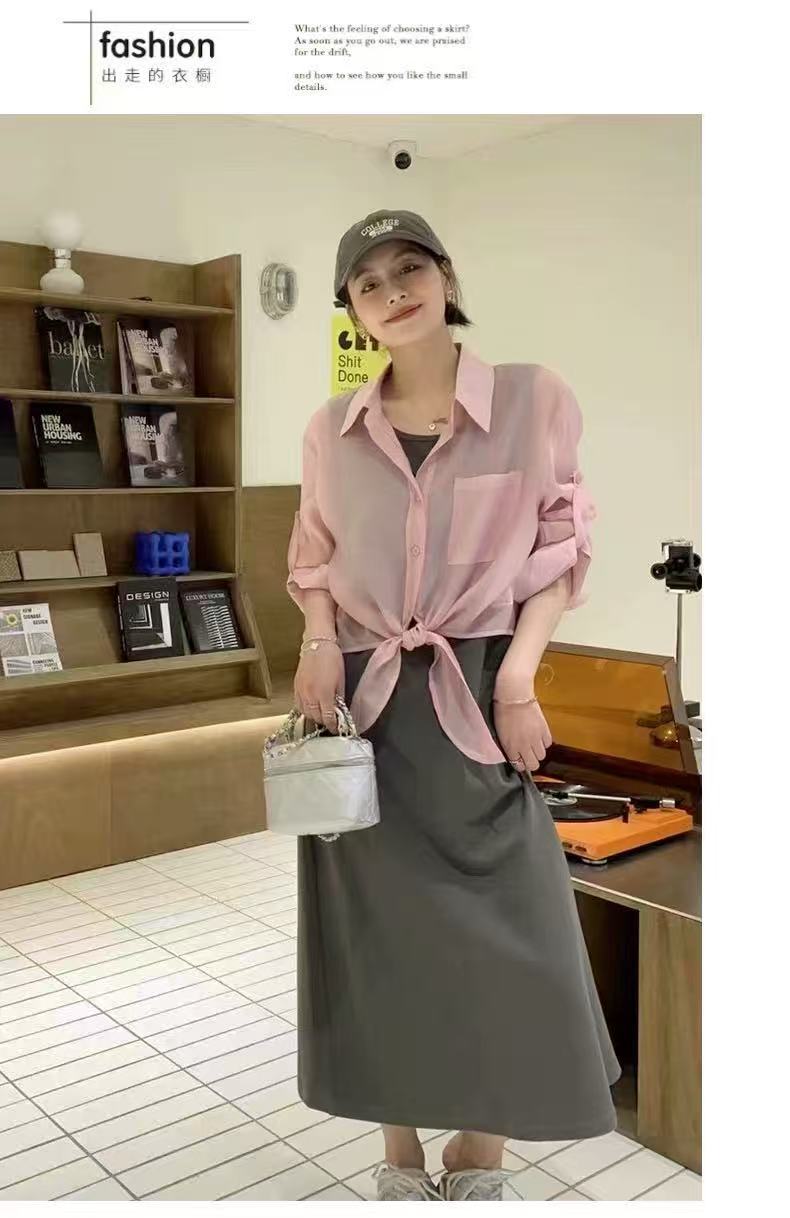 【清仓特卖】74%天丝粉色夏季薄款单件系结衬衫-喜出