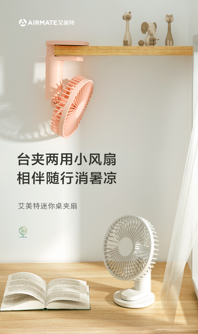 艾美特桌面小风扇usb充电 便携式迷你电风扇小型学生办公桌上
