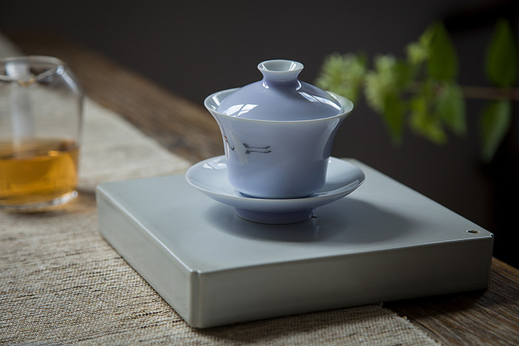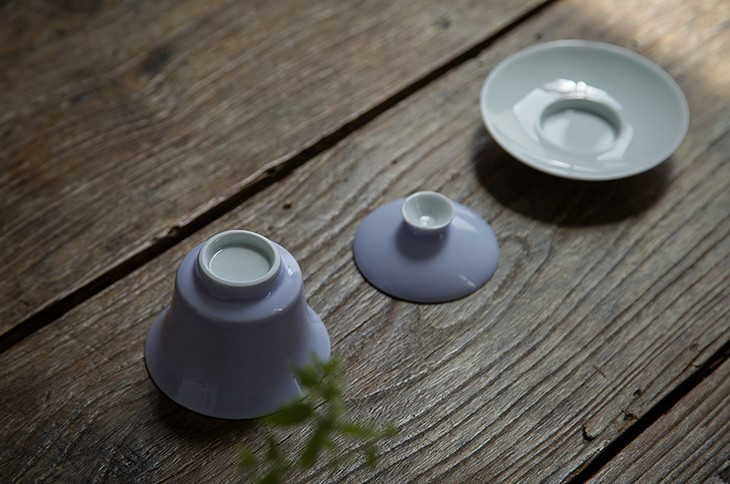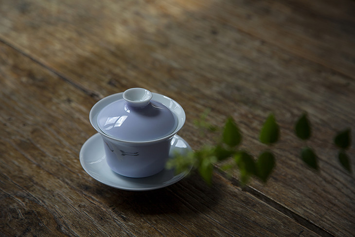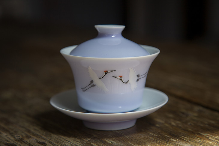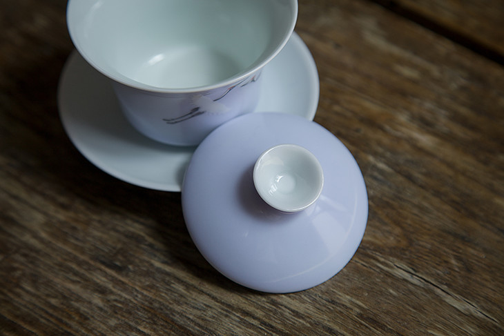 茶香记 颜色釉手绘粉彩仙鹤盖碗-木槿紫 手工手绘 轻薄通透
