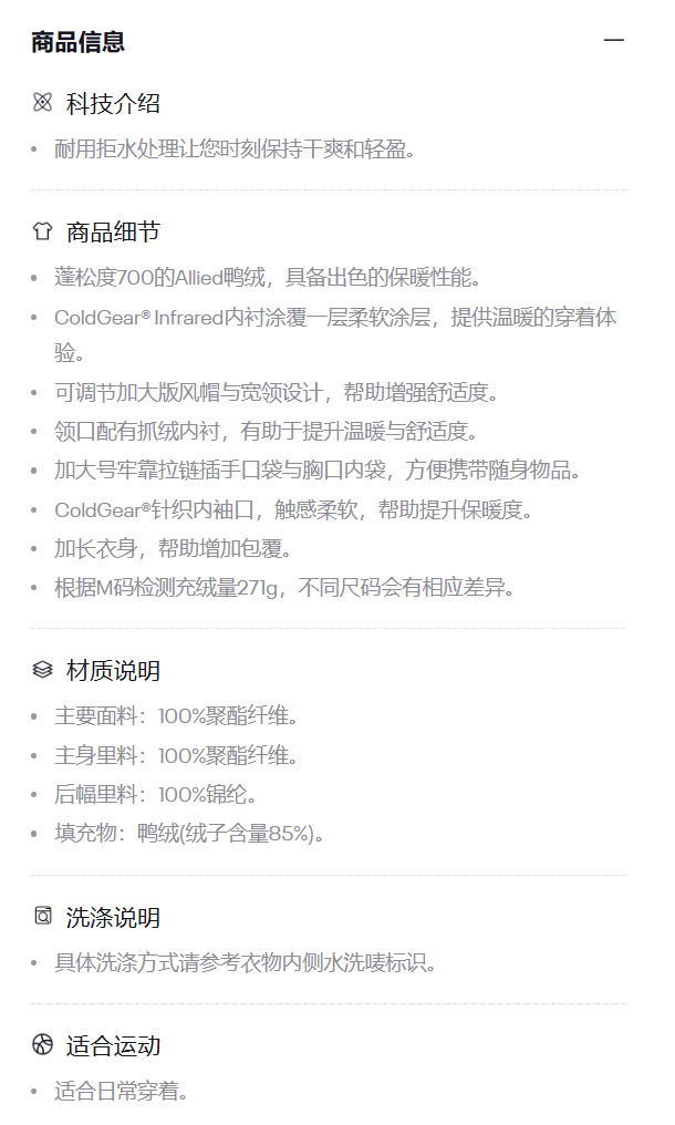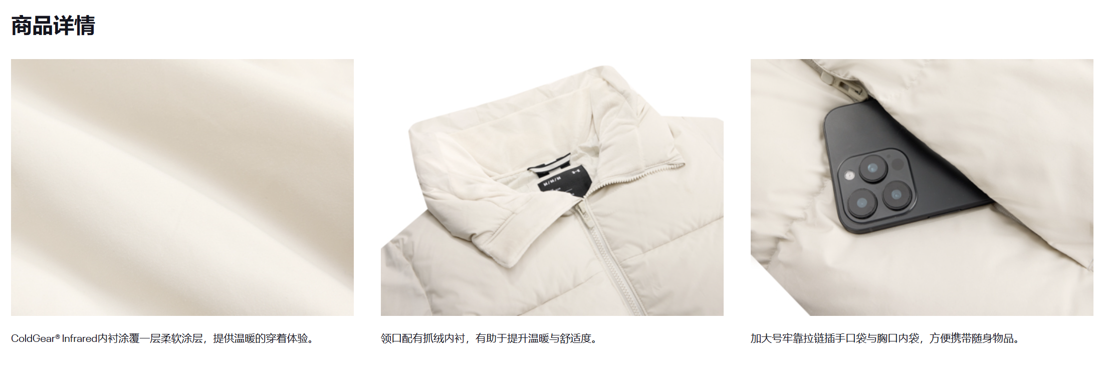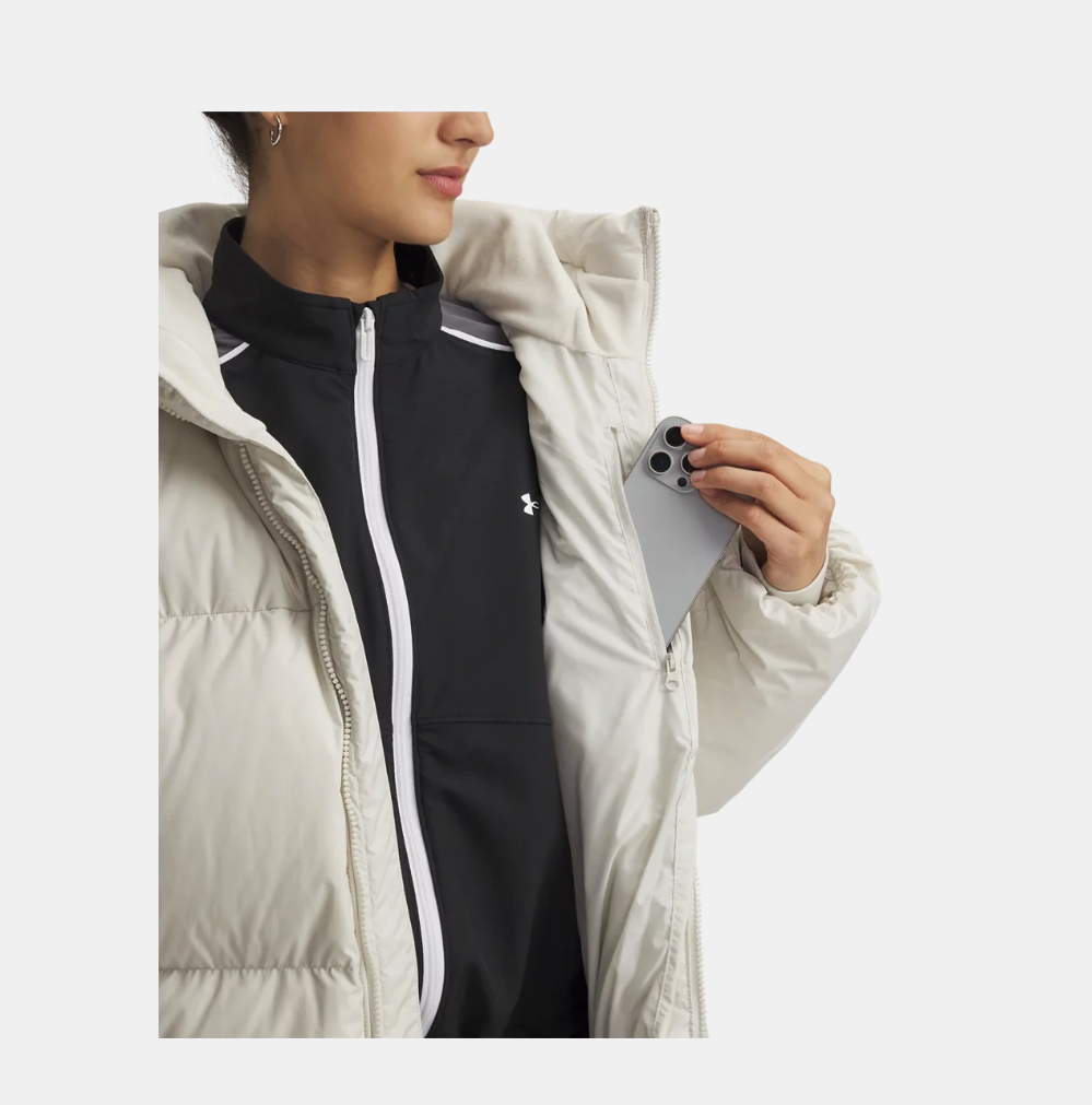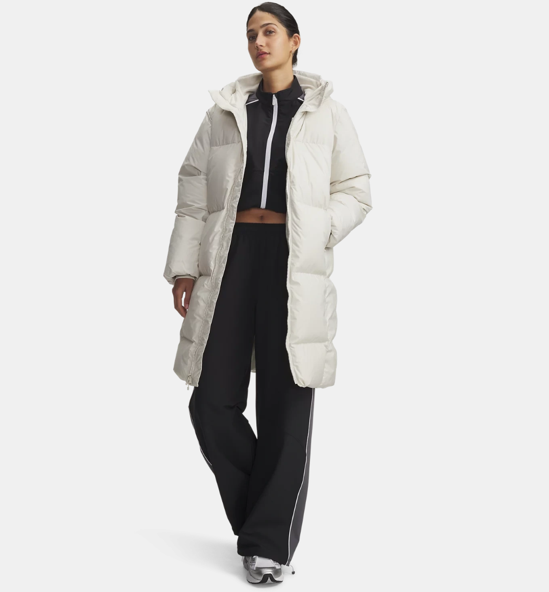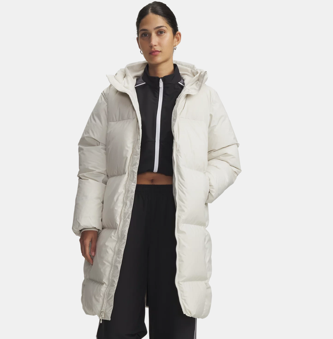 安德玛女子UA Limitless热冬系列700蓬长款鸭绒羽绒服1384649-110