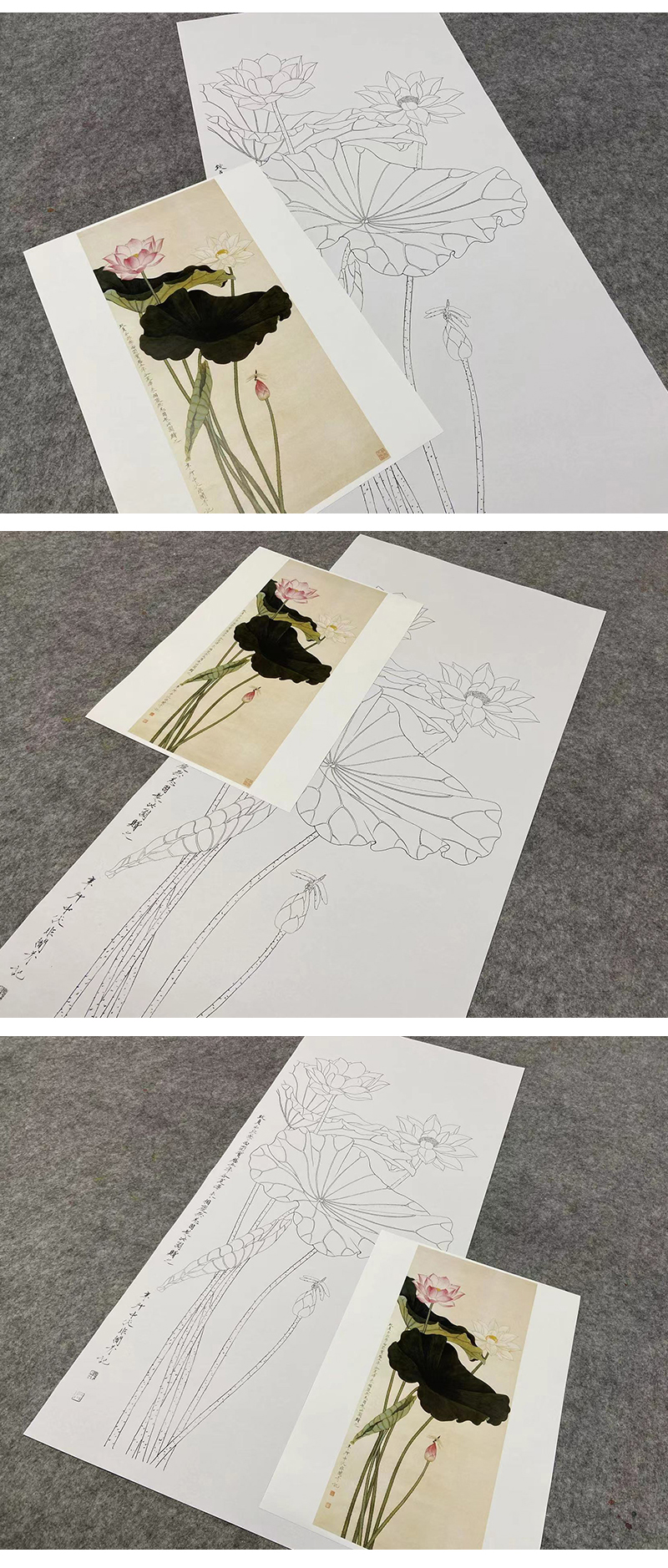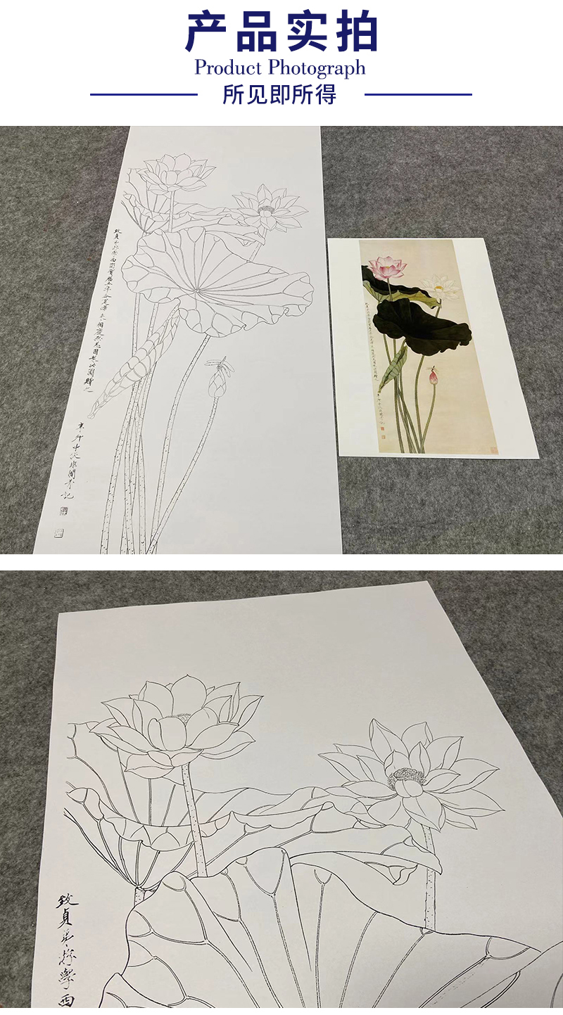 于非闇竖幅工笔花鸟白描底稿-荷花《亭亭玉立》-多种白描尺寸可选-YF39