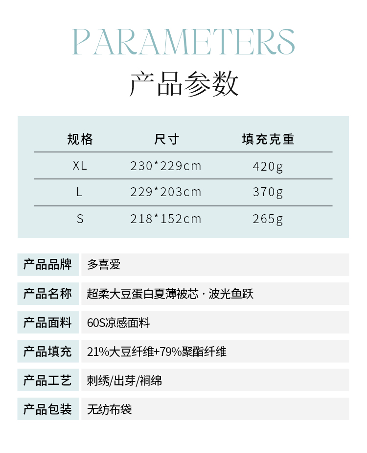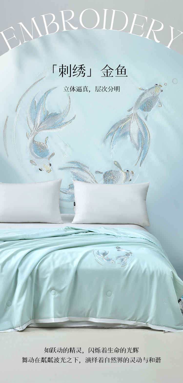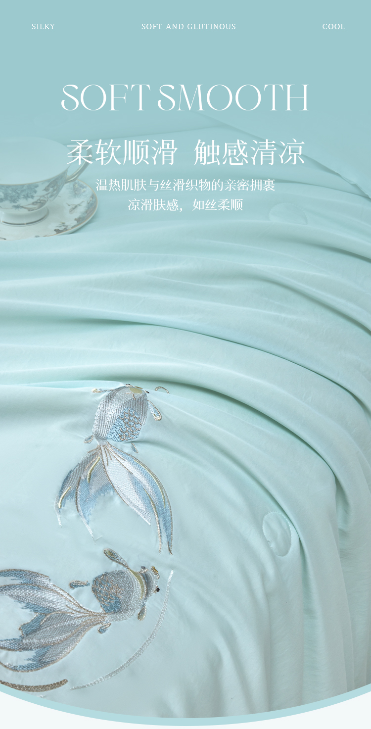 多喜爱 波光鱼跃-超柔大豆蛋白夏薄被芯/空调被【60S天丝绸凉感面料】【刺绣金鱼】【大豆纤维】【出芽设计】柔滑清凉有效抑菌 瞬凉黑科技 轻松水洗