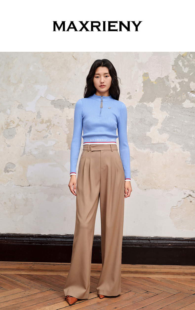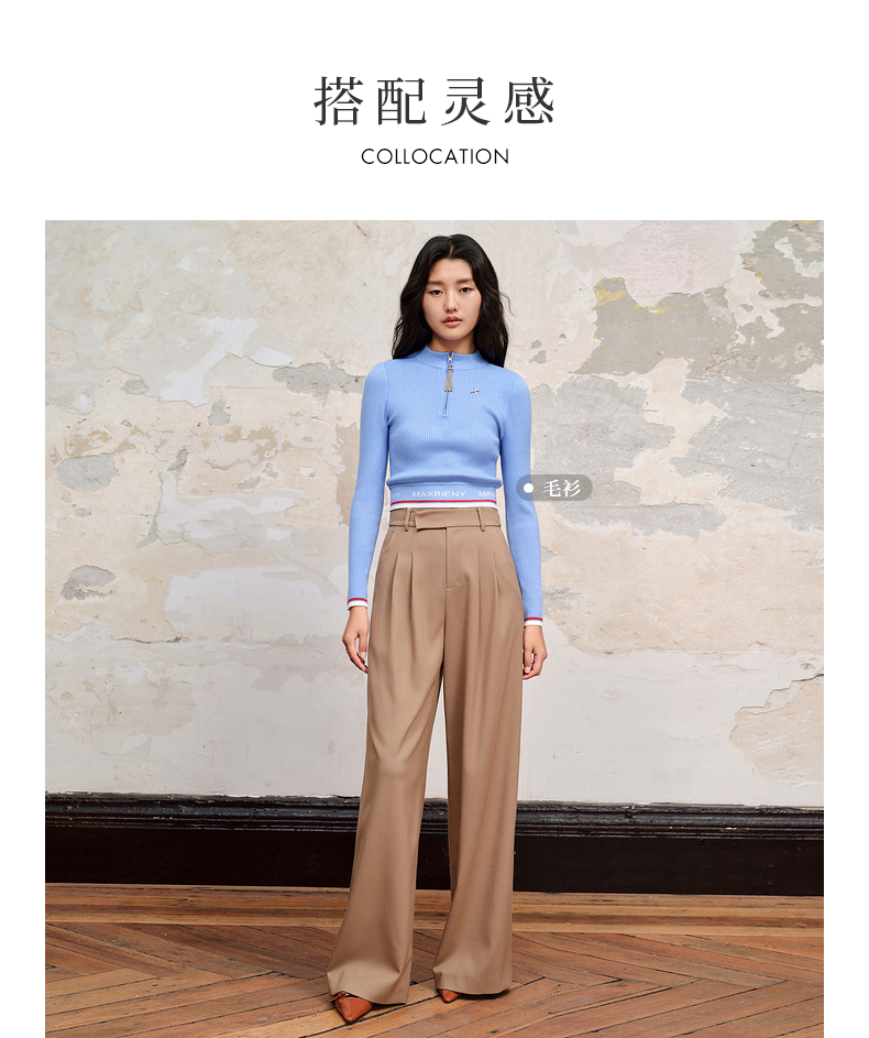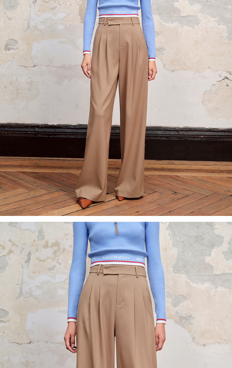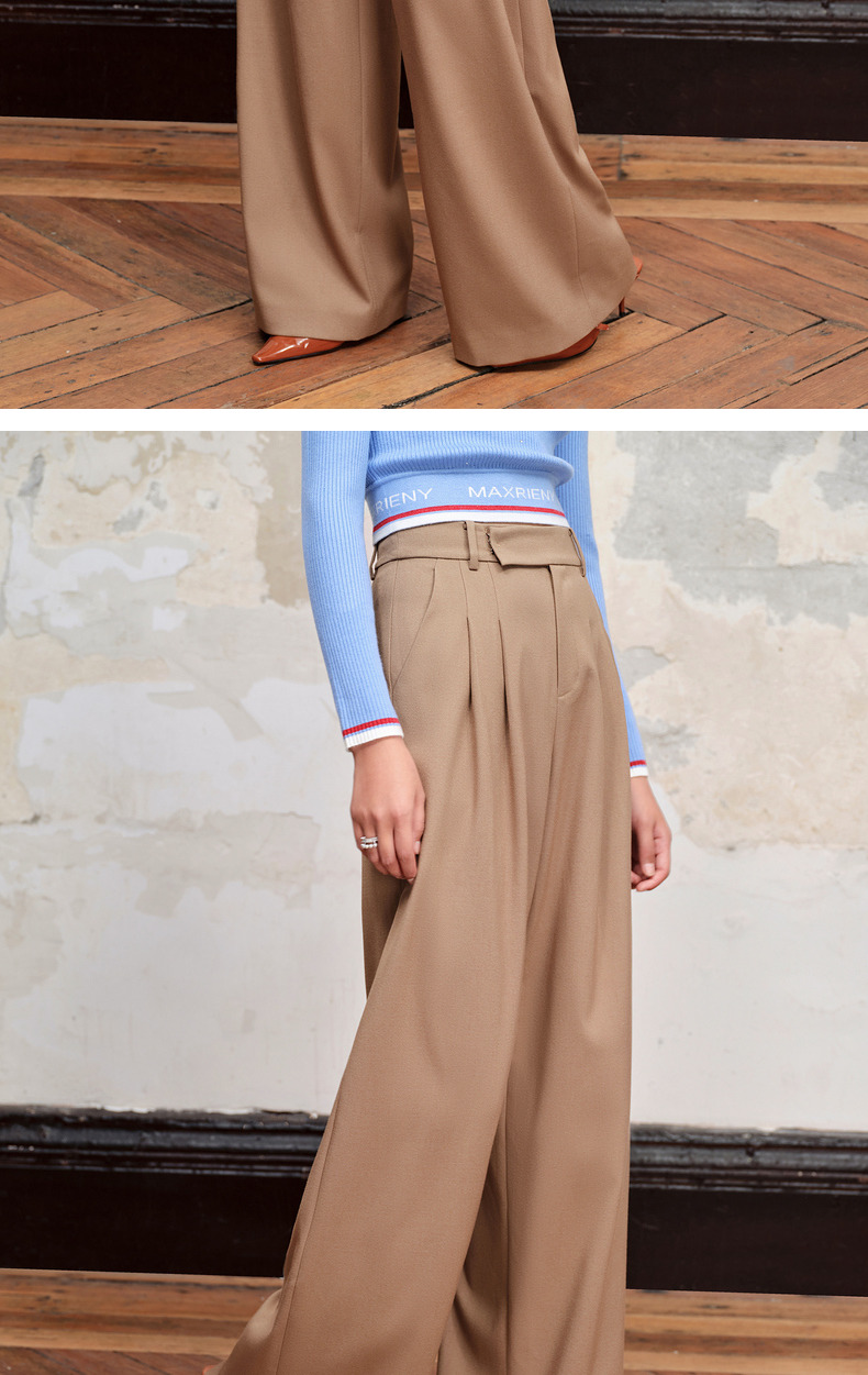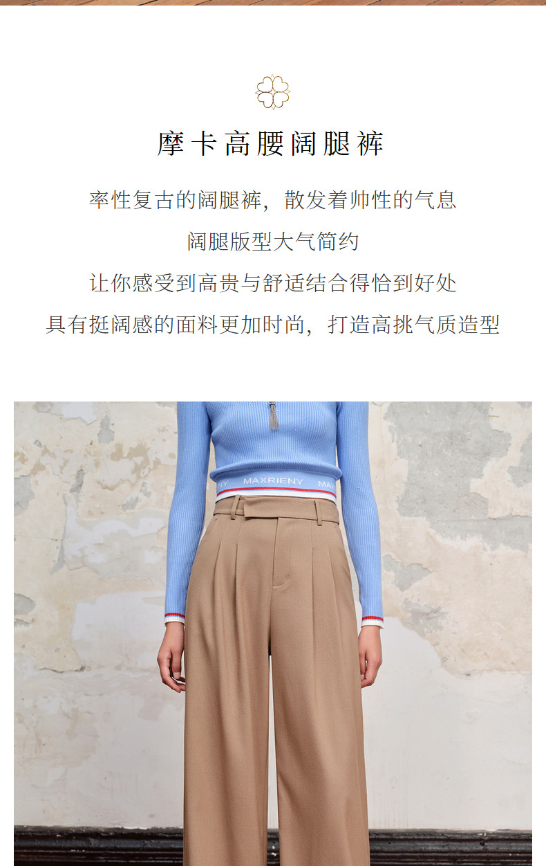 MAXRIENY率性复古感摩卡高腰褶皱阔腿裤梭织休闲裤(货号:MC88PA568)