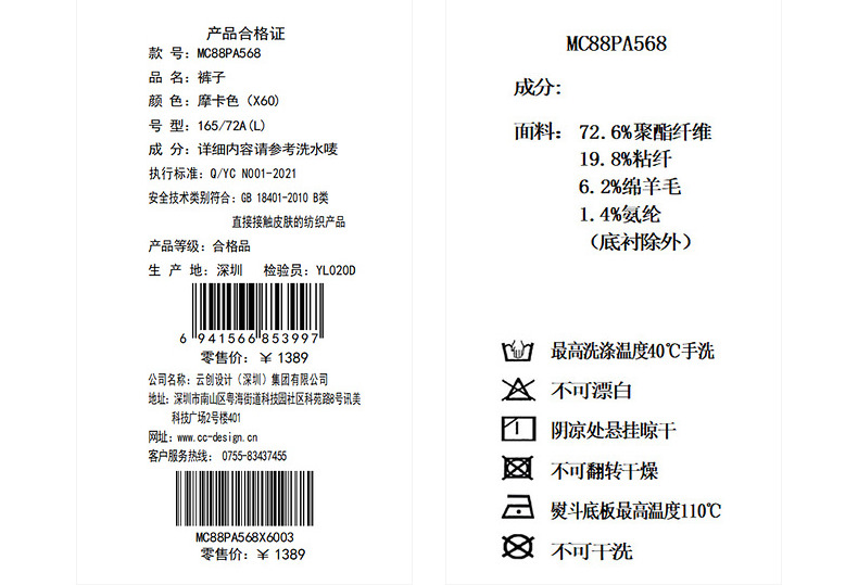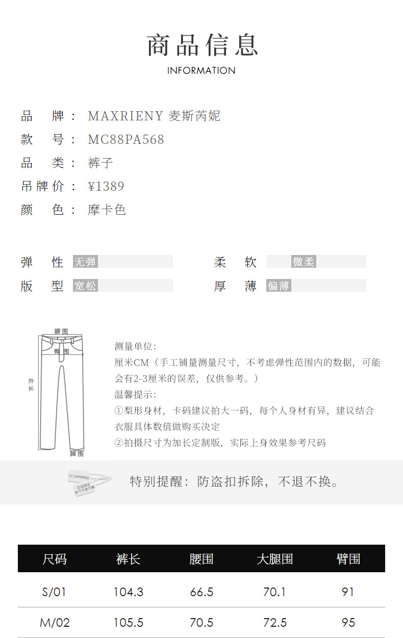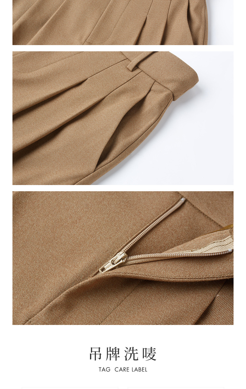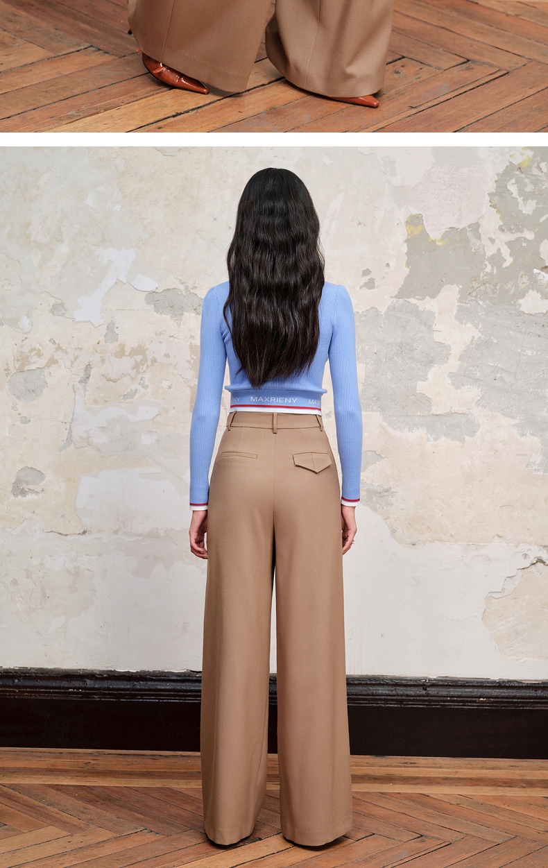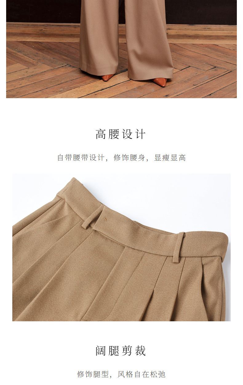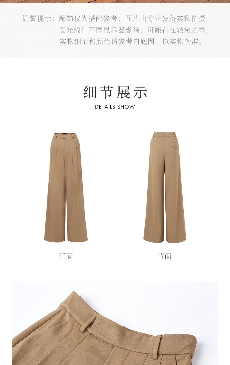 MAXRIENY率性复古感摩卡高腰褶皱阔腿裤梭织休闲裤(货号:MC88PA568)
