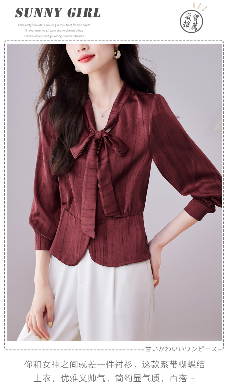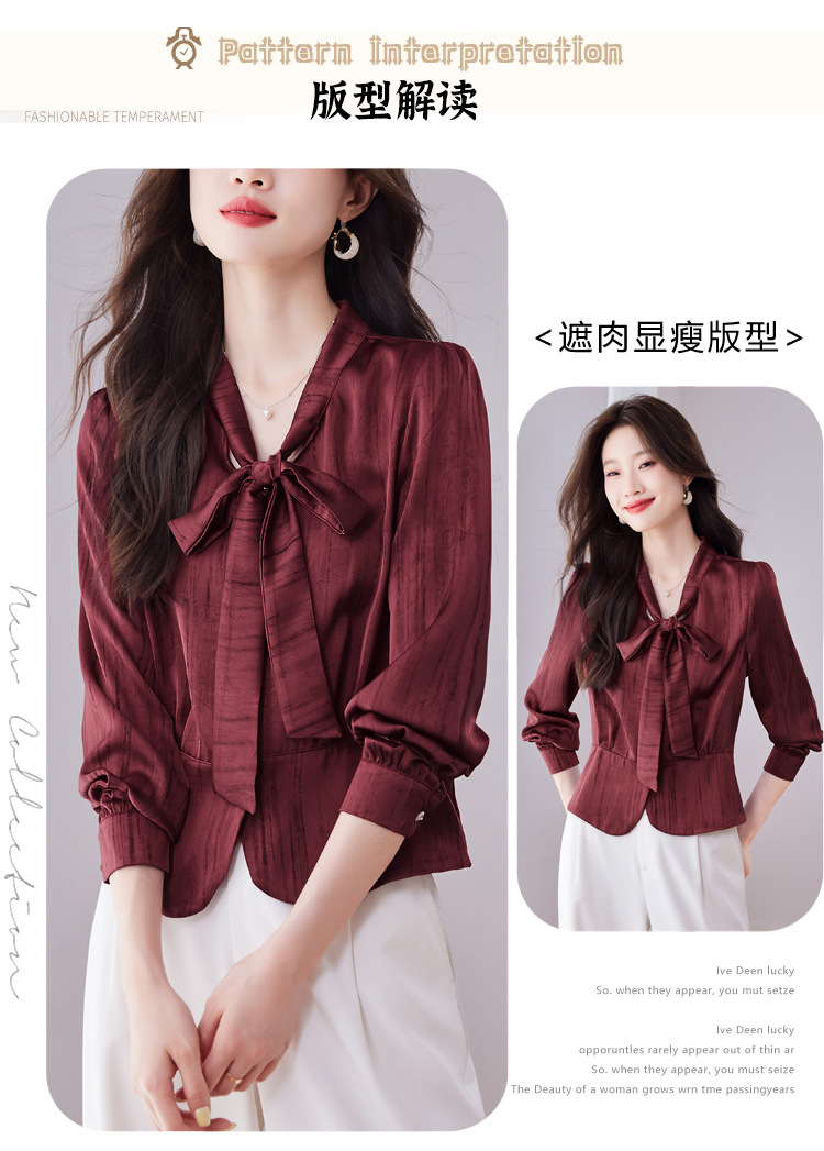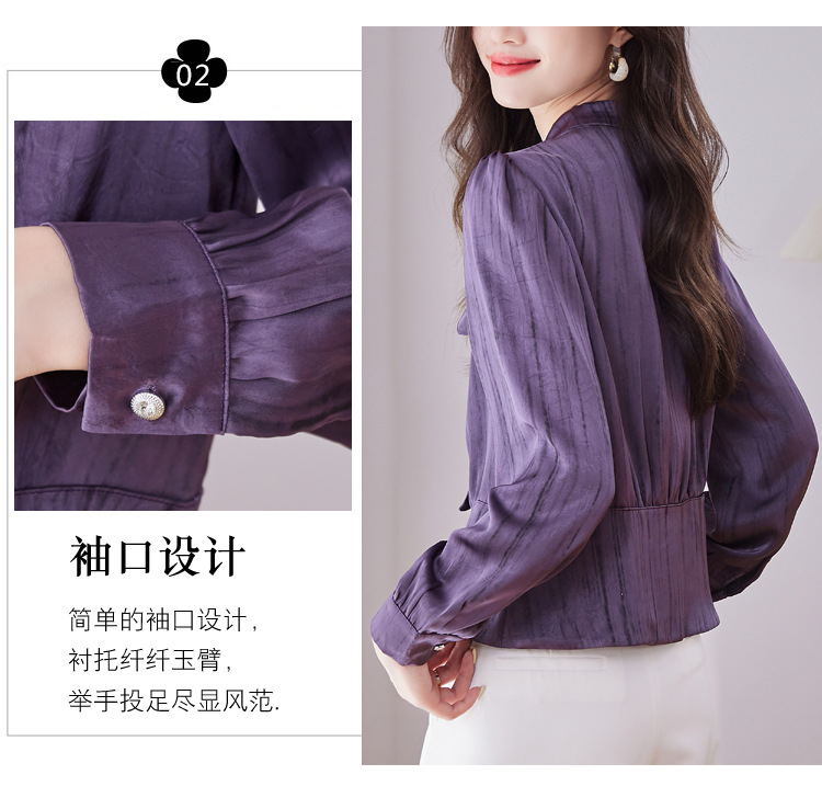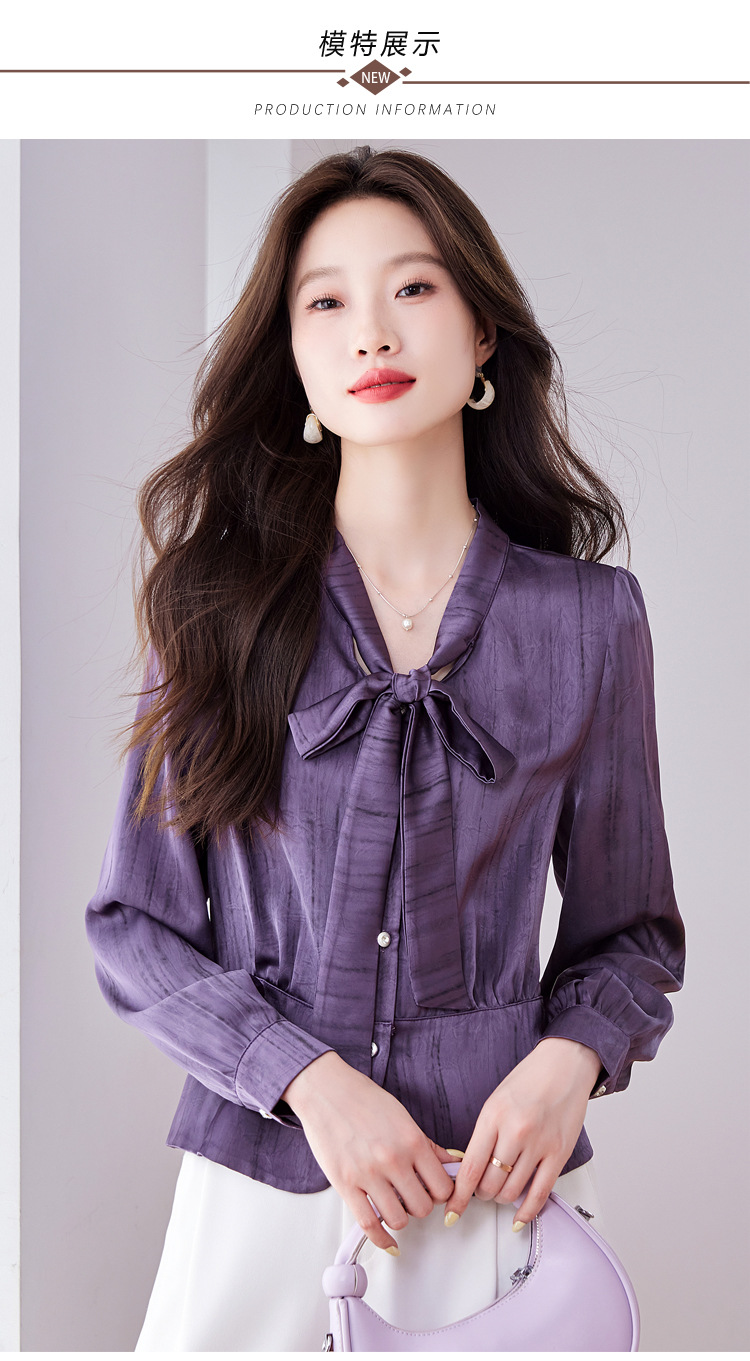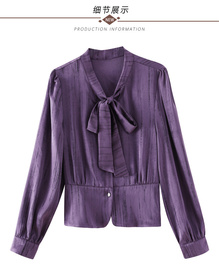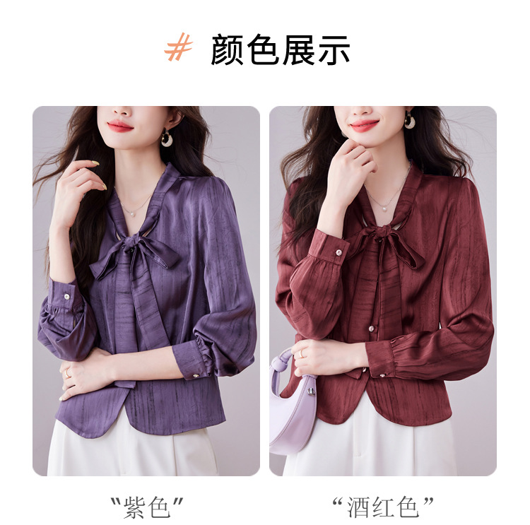 KQL369H9808轻奢高端醋酸条纹收腰蝴蝶结设计感衬衫2025秋季新款长袖上衣
