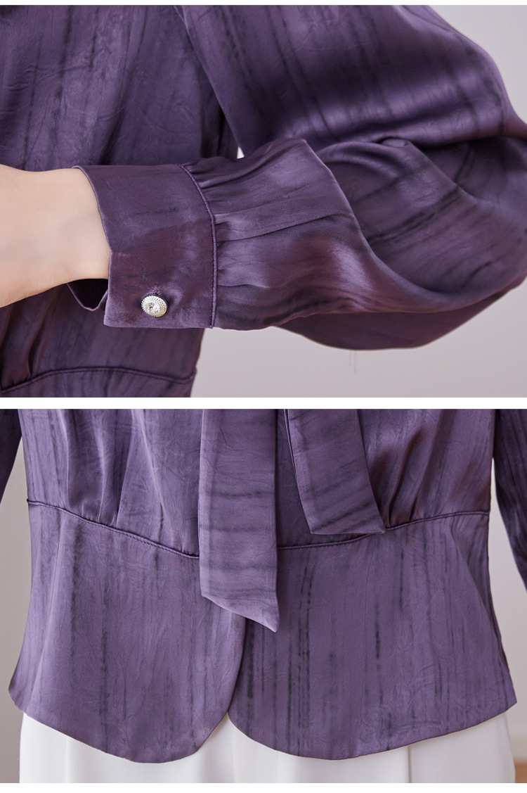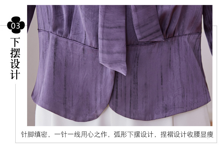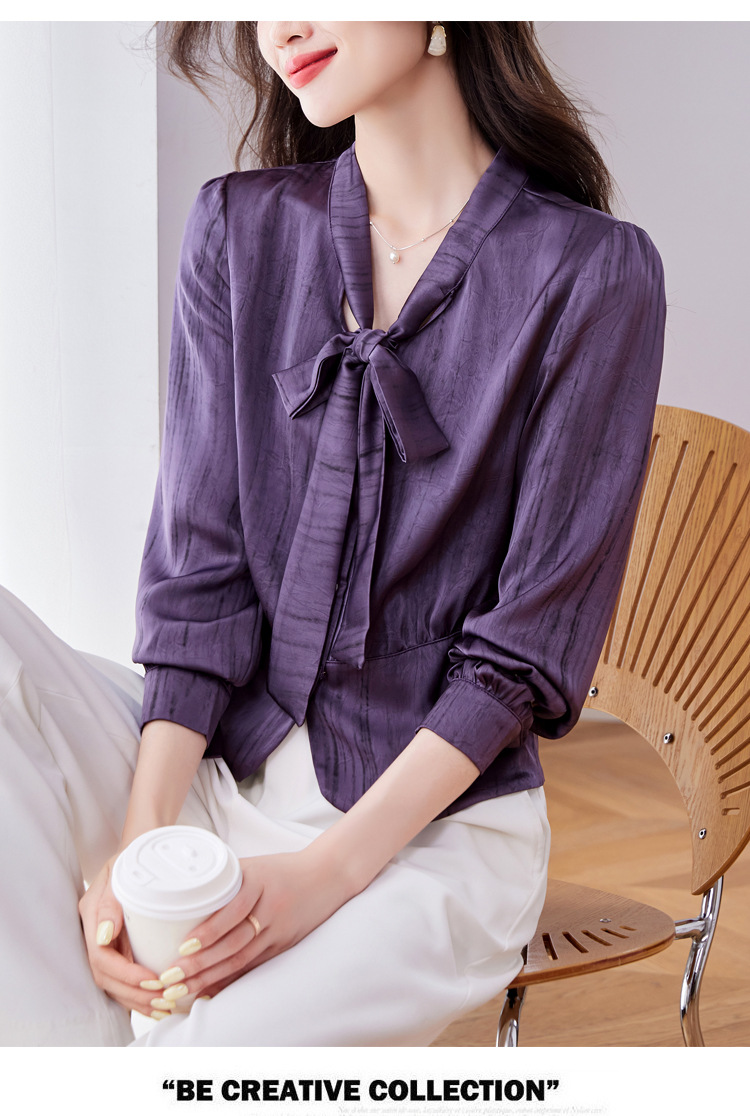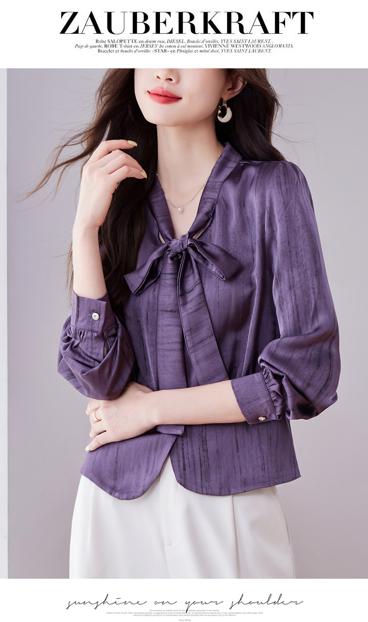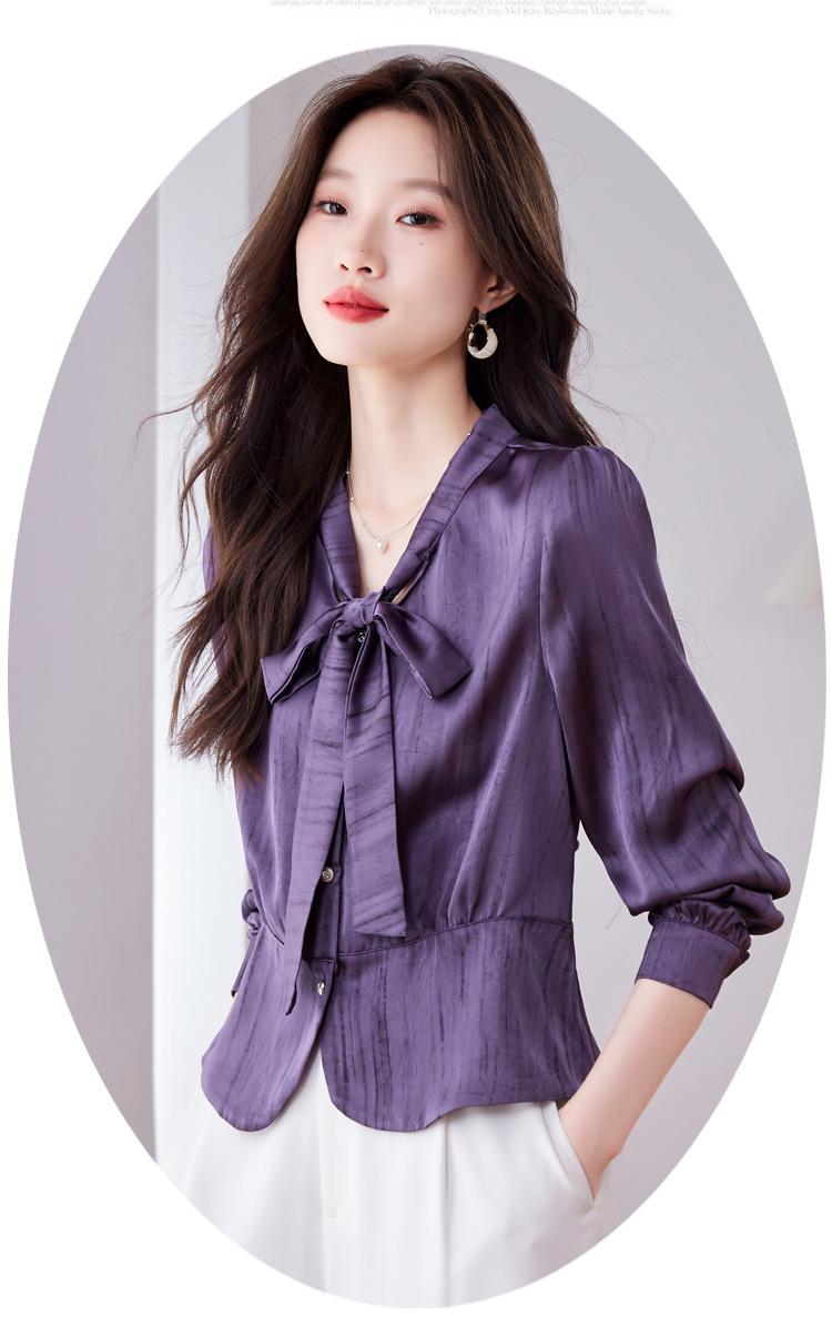 KQL369H9808轻奢高端醋酸条纹收腰蝴蝶结设计感衬衫2025秋季新款长袖上衣