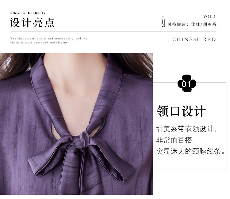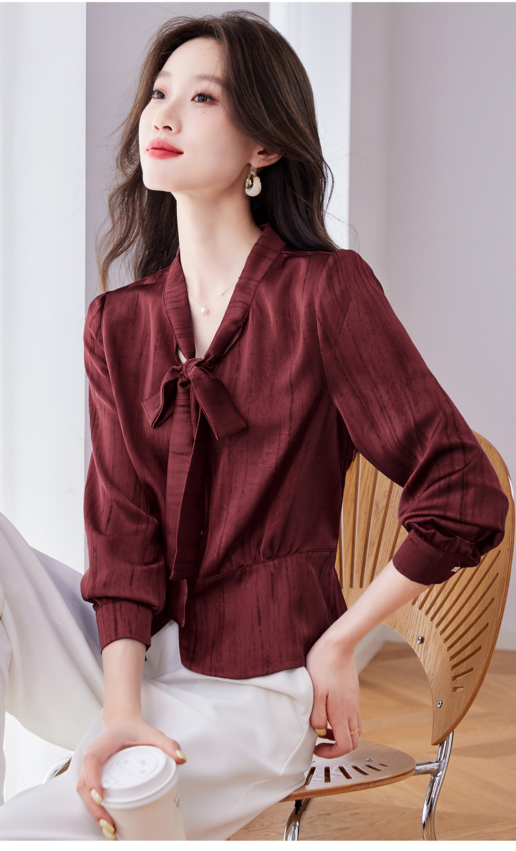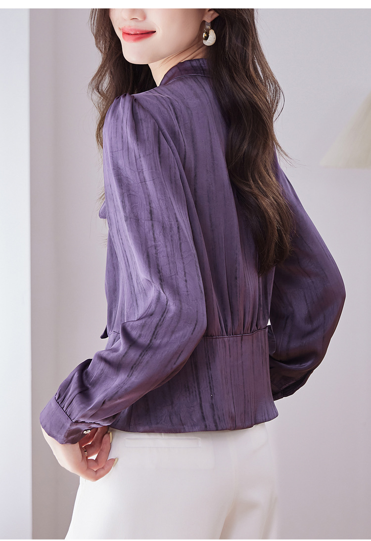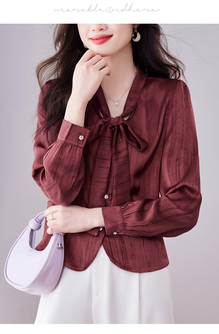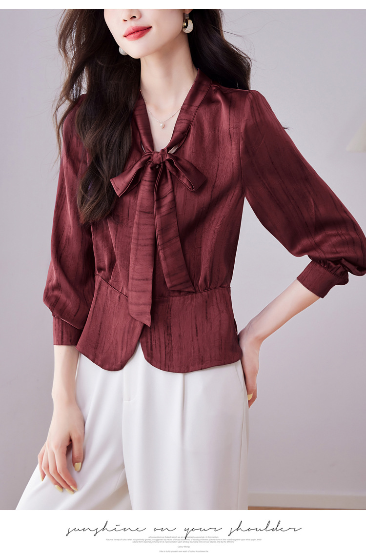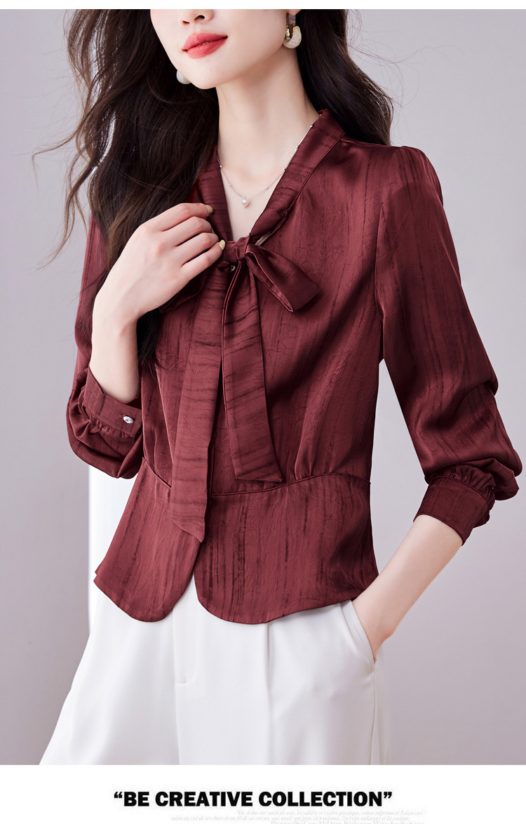 KQL369H9808轻奢高端醋酸条纹收腰蝴蝶结设计感衬衫2025秋季新款长袖上衣