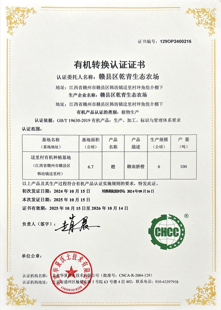 绿手指也给声胜对接了有机认证,现在已经取得了有机转换认证证书(已是转换期第二年)。