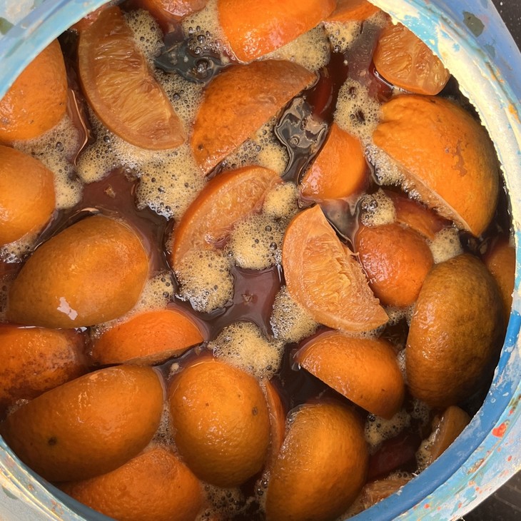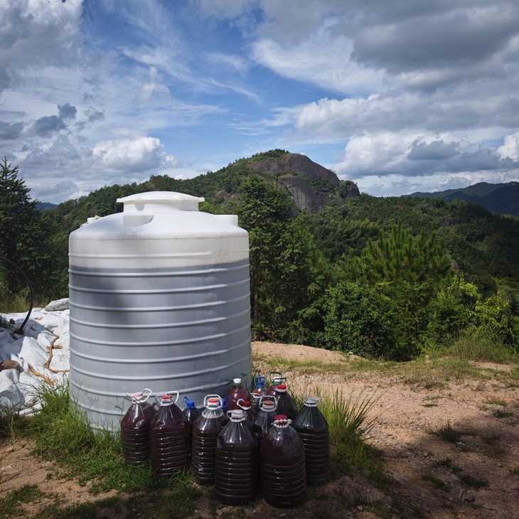自制脐橙酵素,使用菌类和有机标准允许使用的铜制剂以及悬挂黄板,防治病虫害。