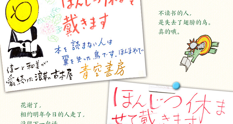 不管是大作家还是年轻人,都喜欢来青空书房,品味真正的读书之乐。——《朝日新闻》