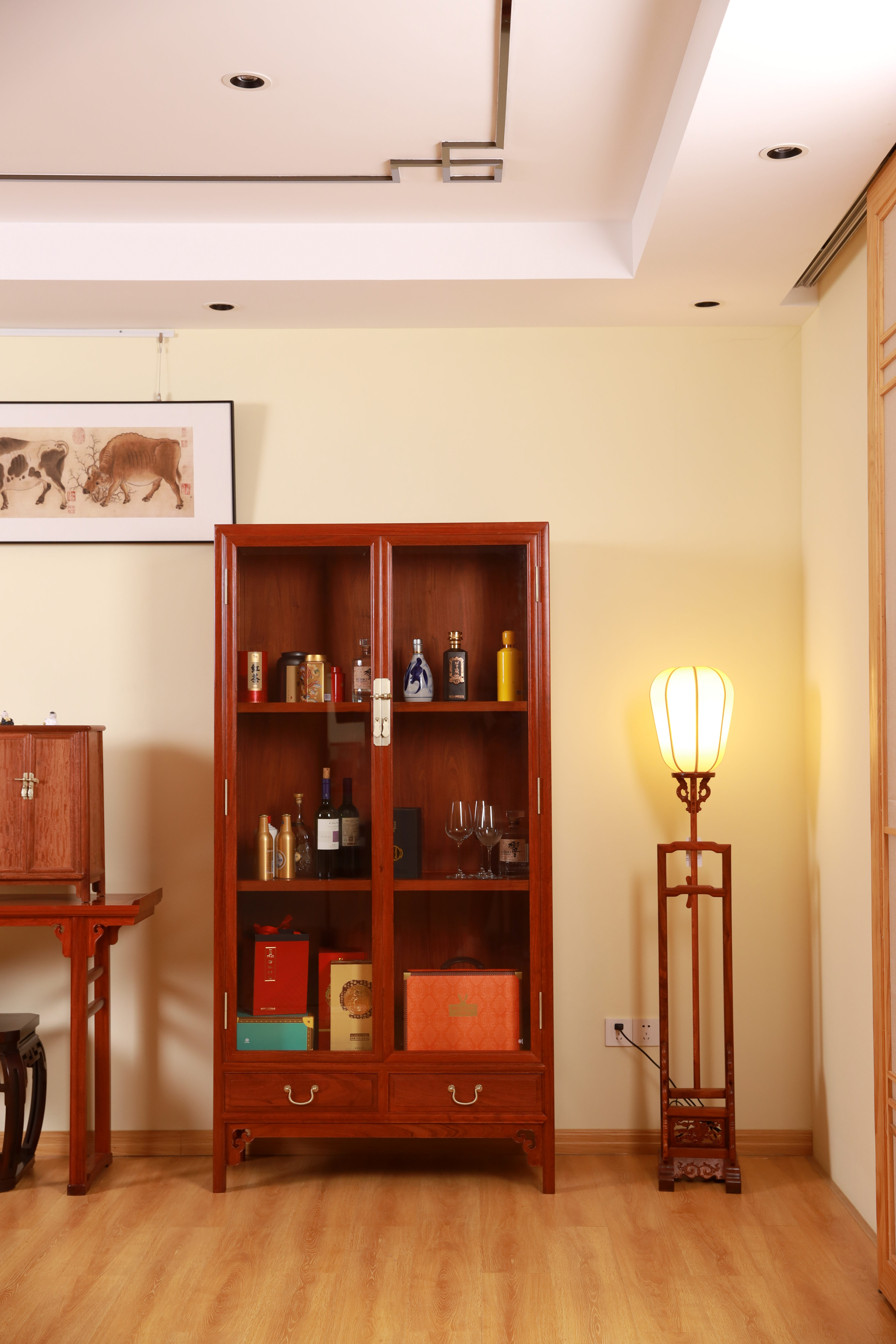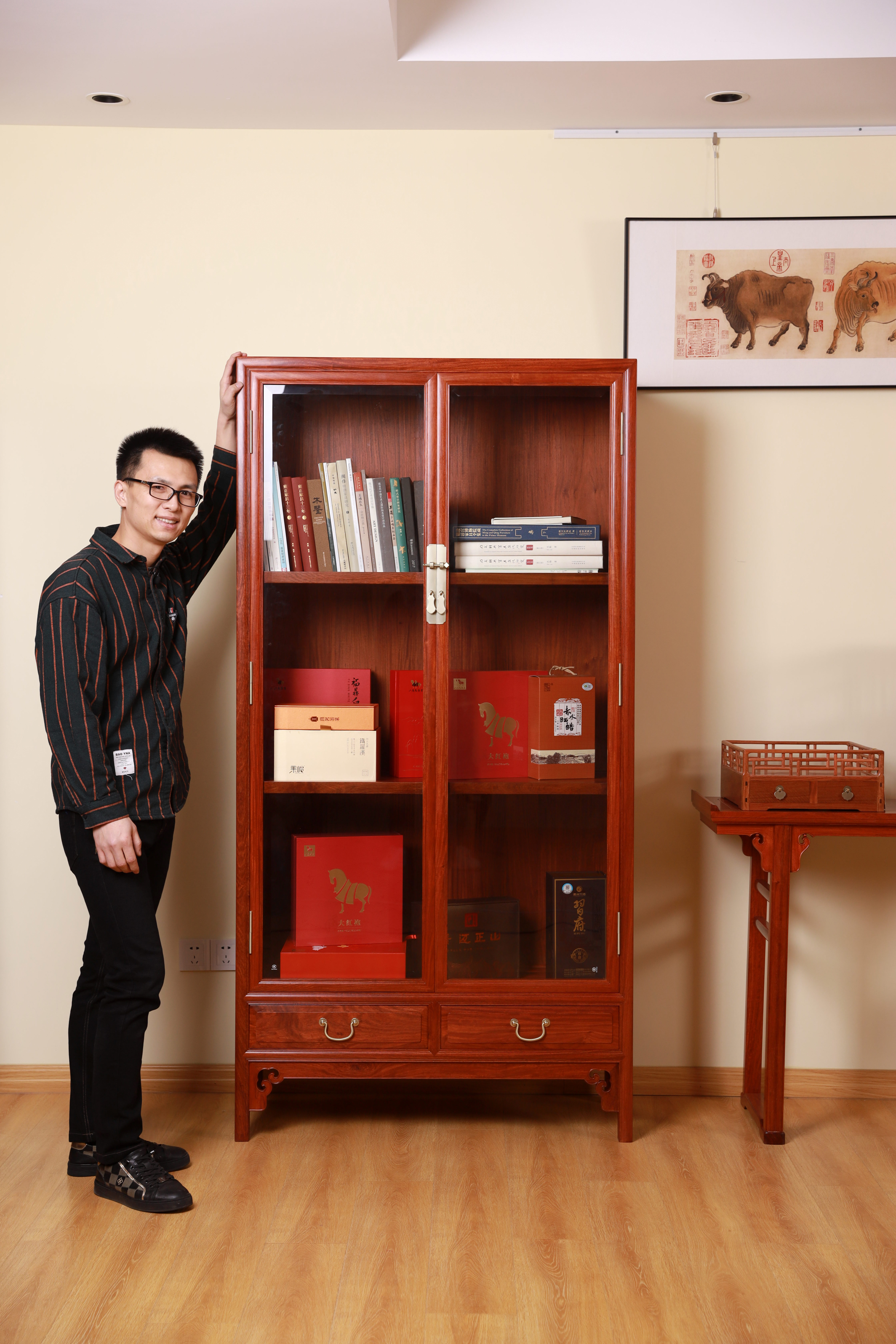 此柜展示收纳一应俱全,通体素雅,器形古雅清逸,收纳强大。是当代又不失古典之韵味,为缅花柜类的精品之作。