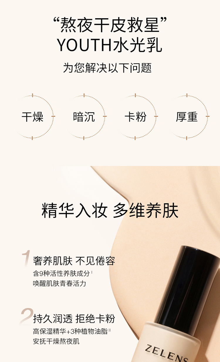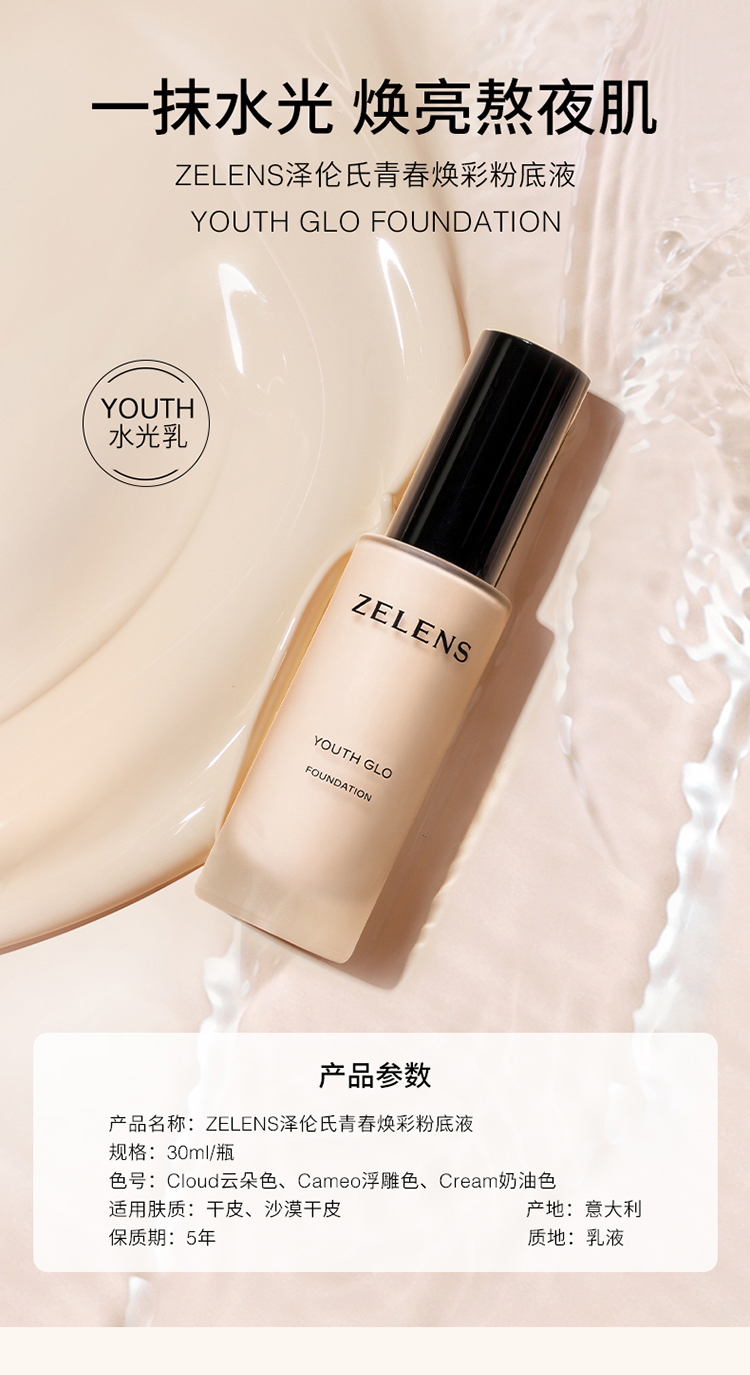 ZELENS泽伦氏 youth青春焕彩粉底液30ml/瓶(赠粉扑)【该商品不支持用券】