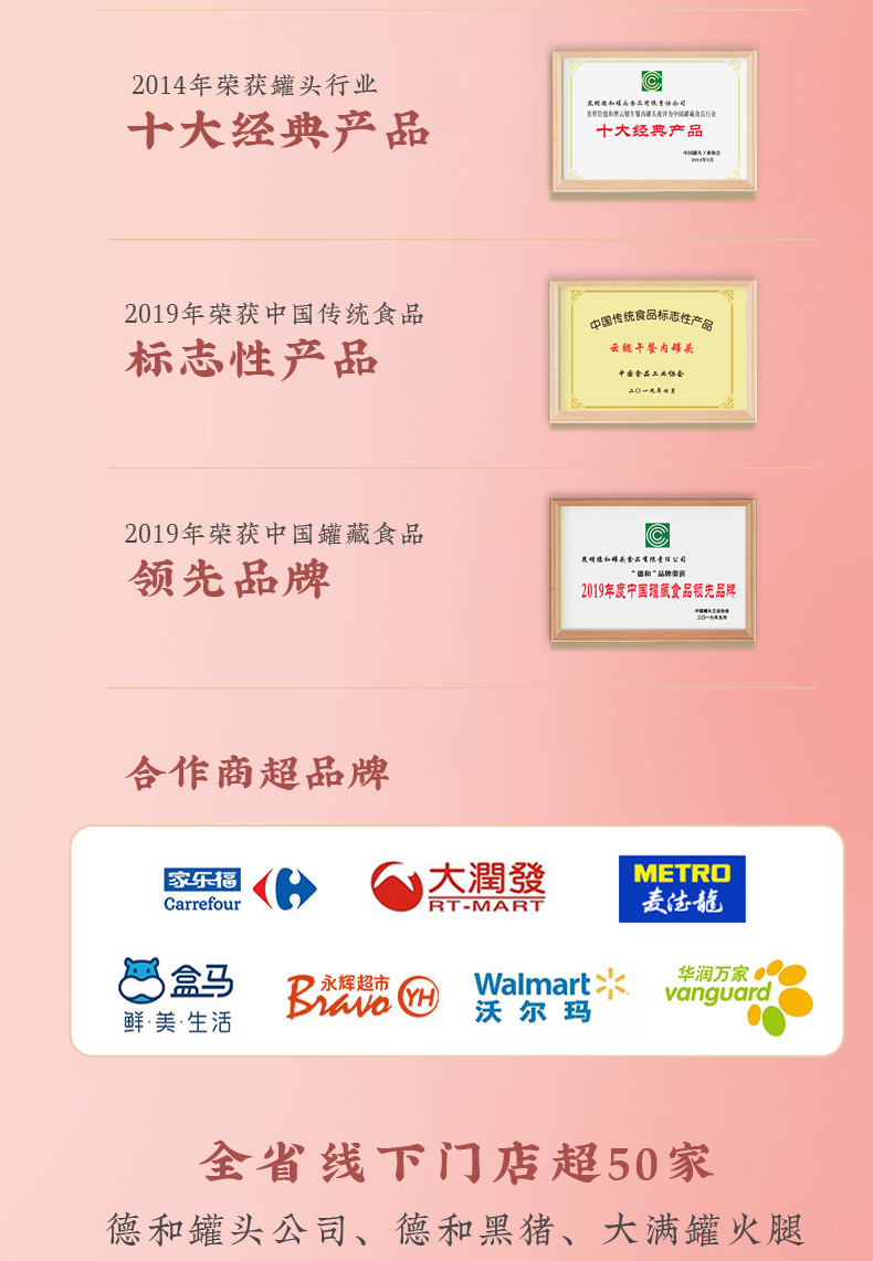 昆明德和罐头厂是中国最早开始生产制造罐头的企业之一,至今已有九十八年的悠久历史,现已形成以罐头食品为主,腌腊制品、糕点月饼等为辅的云南省规模最大和最具影响力综合食品制造企业,奠定了云南罐头行业的基石。