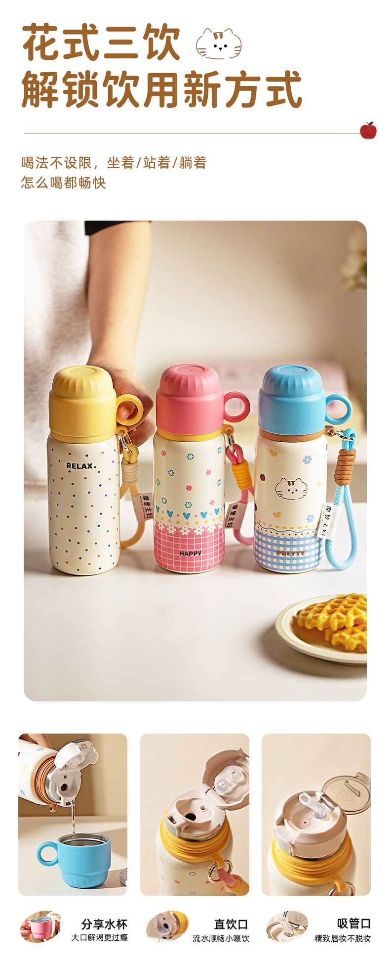 摩登主妇儿童保温杯学生上学专用吸管杯高颜值杯子女2024新款水杯