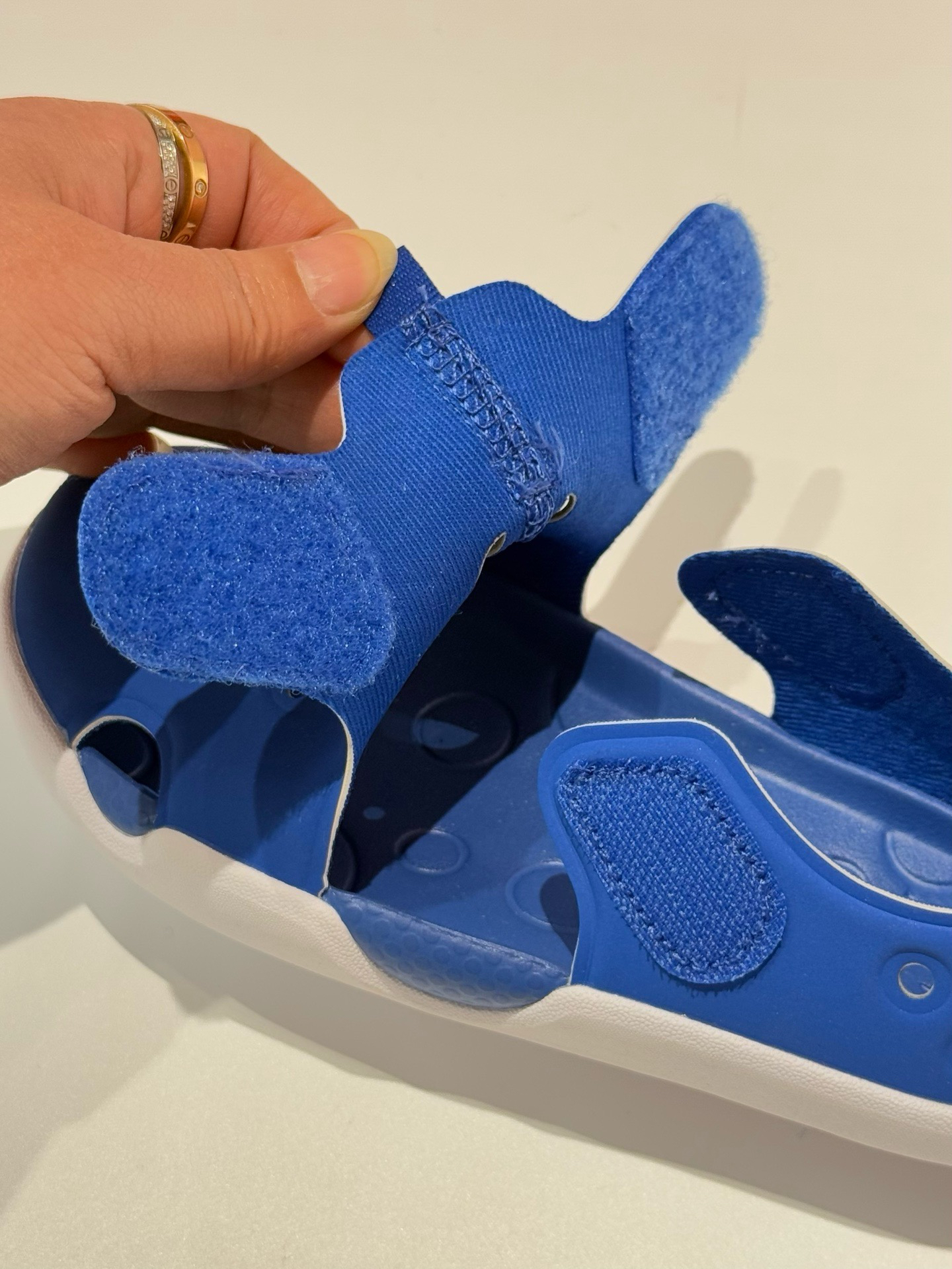 ➡️整个鞋面的设计也很贴心哈,前侧是魔术贴设计的,后跟是半镂空设计,上脚舒适透气、方便穿脱,还可以做沙滩鞋,很轻便、很舒服的儿童鞋,咱们连着出了几年的老口碑款了,今年颜色最多,推荐各位宝妈、宝爸留这双~💰119