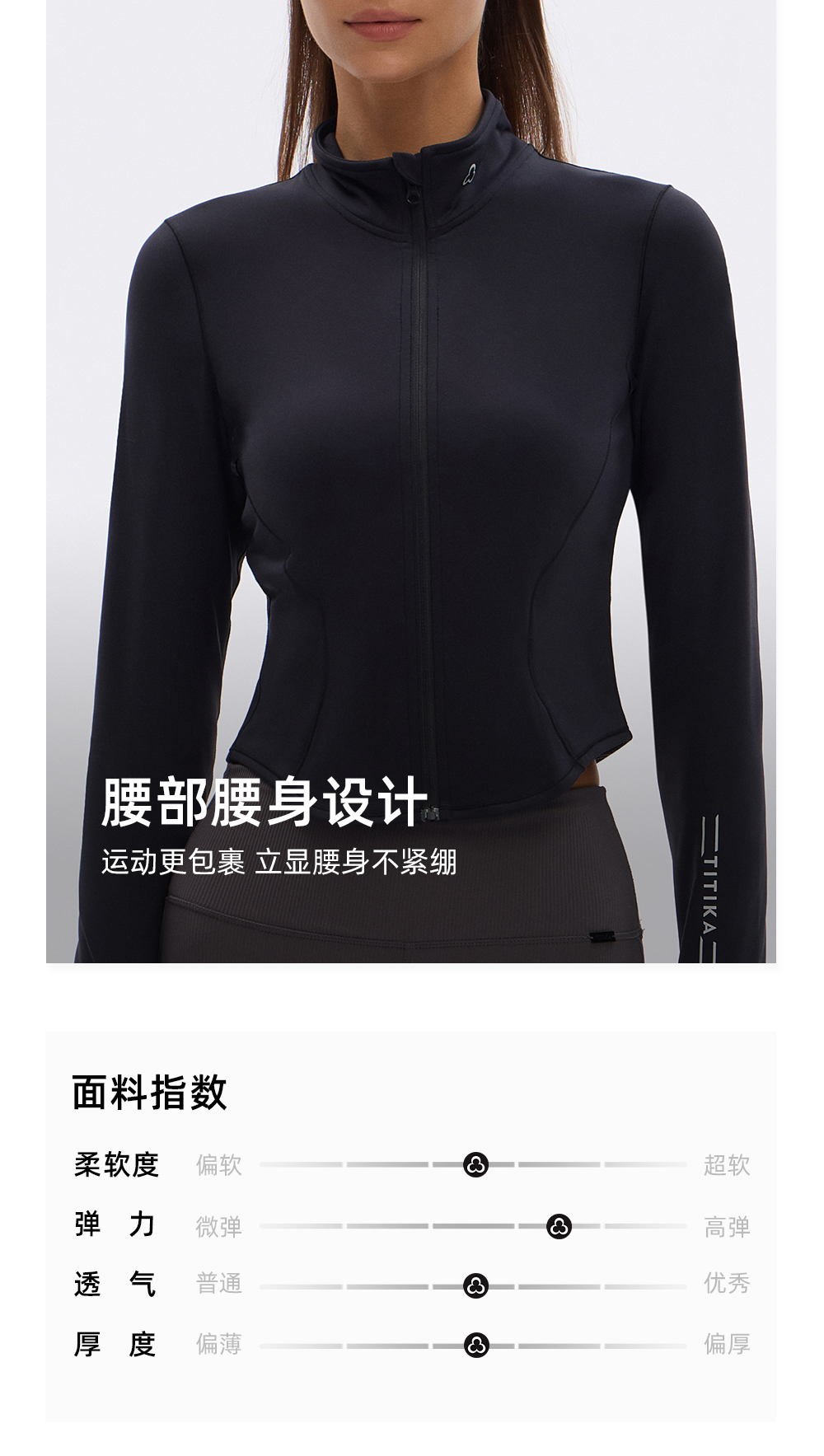 TITIKA立领拉链修身外套户外紧身短款健身跑步长袖上衣31226