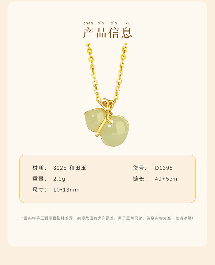 葫芦纯银925和田玉项链女国潮新中式爱心锁骨链ins风福禄双全吊坠D1395