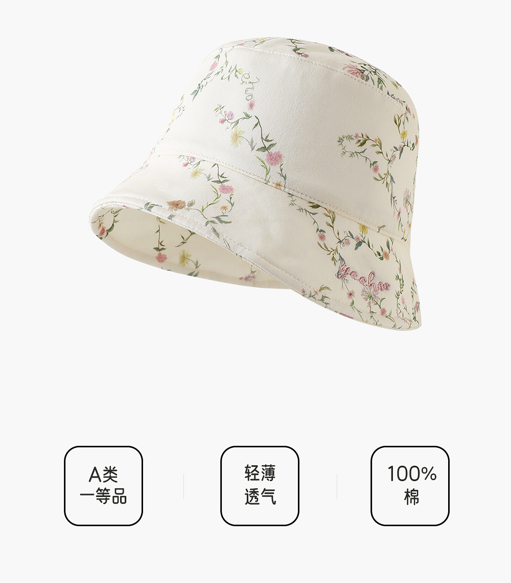【商场同款】英氏儿童帽子防晒遮阳渔夫帽女童印花渔夫帽女宝帽子