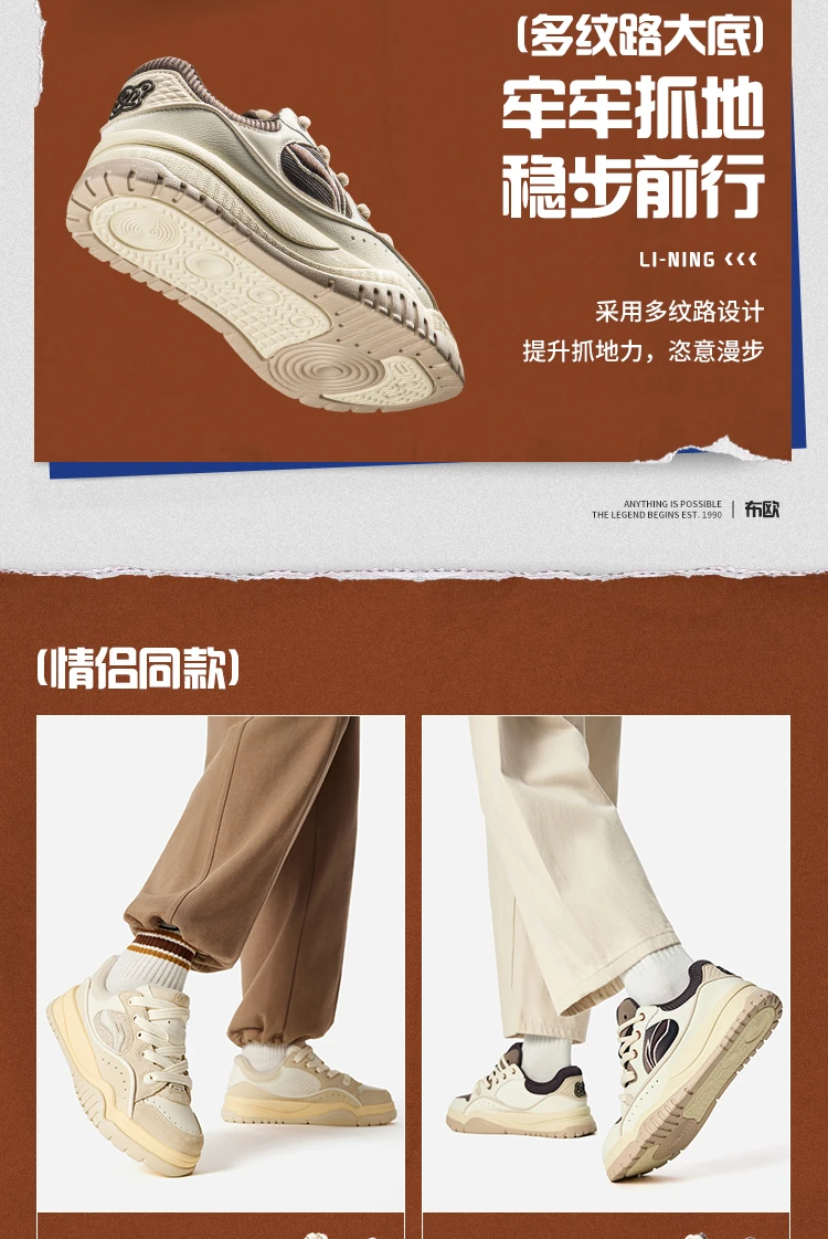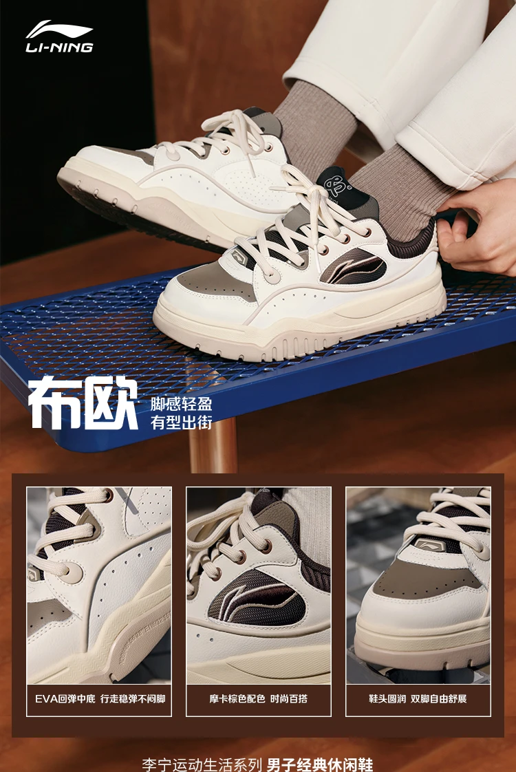 李宁布欧男子舒适软弹板鞋经典休闲鞋AGCV463