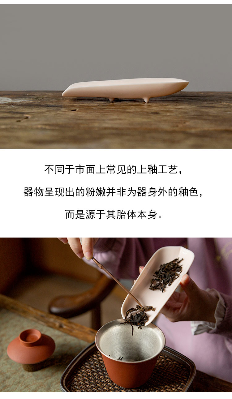 茶香记 樱花粉茶则 粉胎 清透淡粉 质感莹润 光泽柔和 功夫茶具