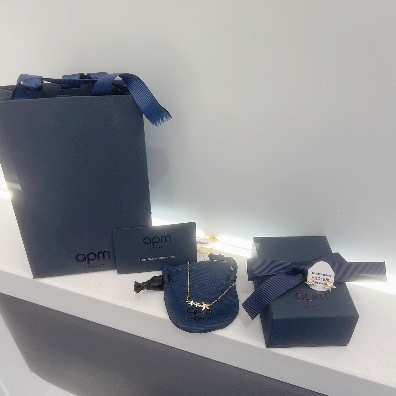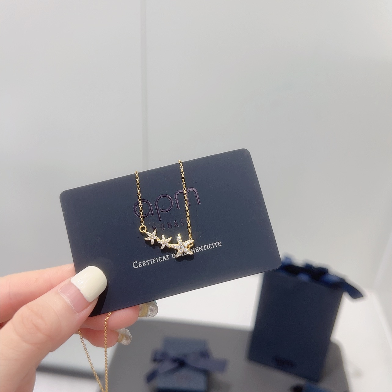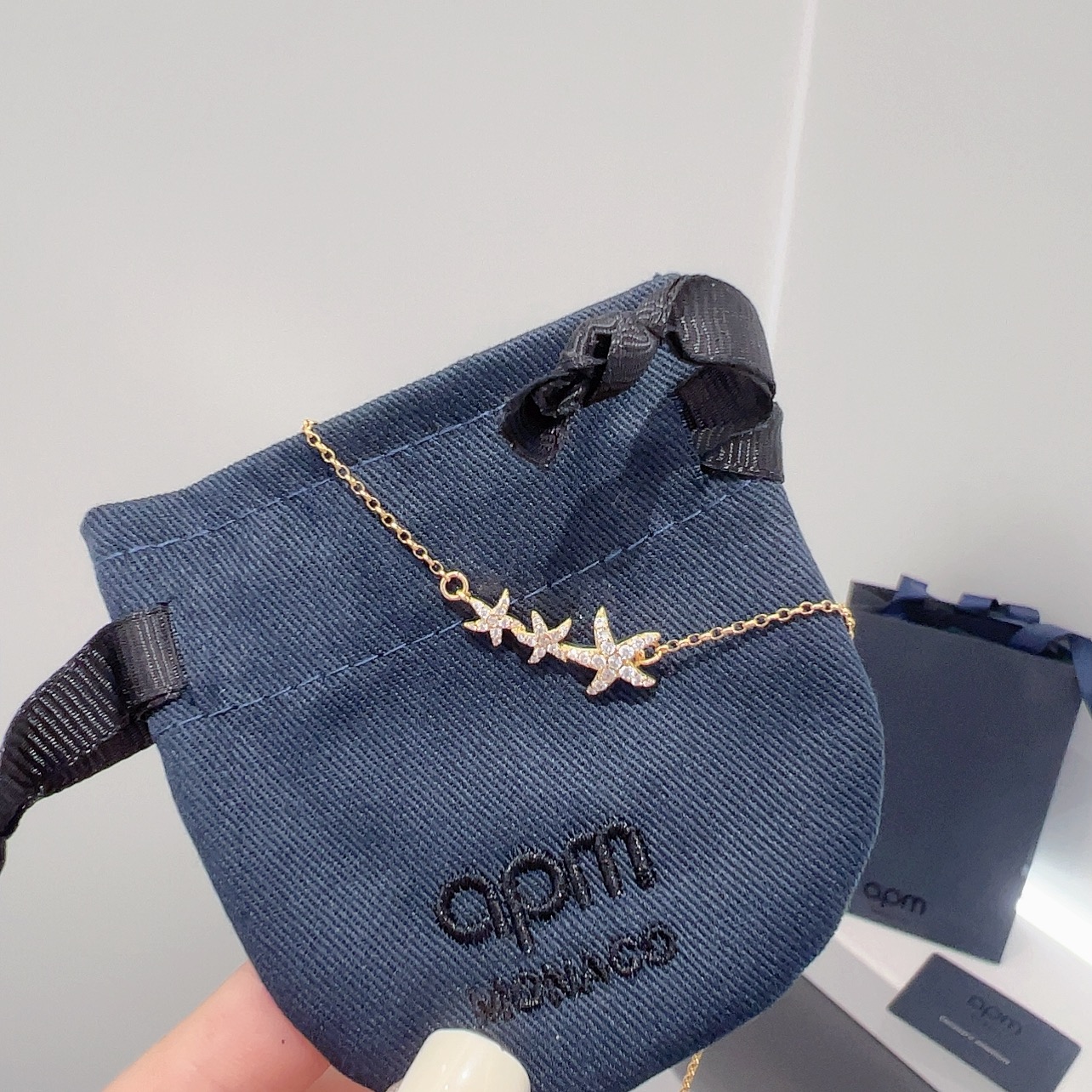 ,Apm新款海星项链!强烈推荐这款Apm金色海星项链! !满钻的不规则三颗小海星非常萌,金色浓郁的度假风情,最适合这个热情的季节!而且特衬皮肤,超级显白。海星造型灵气,栩栩如生,恰如其分的弧度展现了海星的姿态!超级好搭配衣服!!项链可调节!