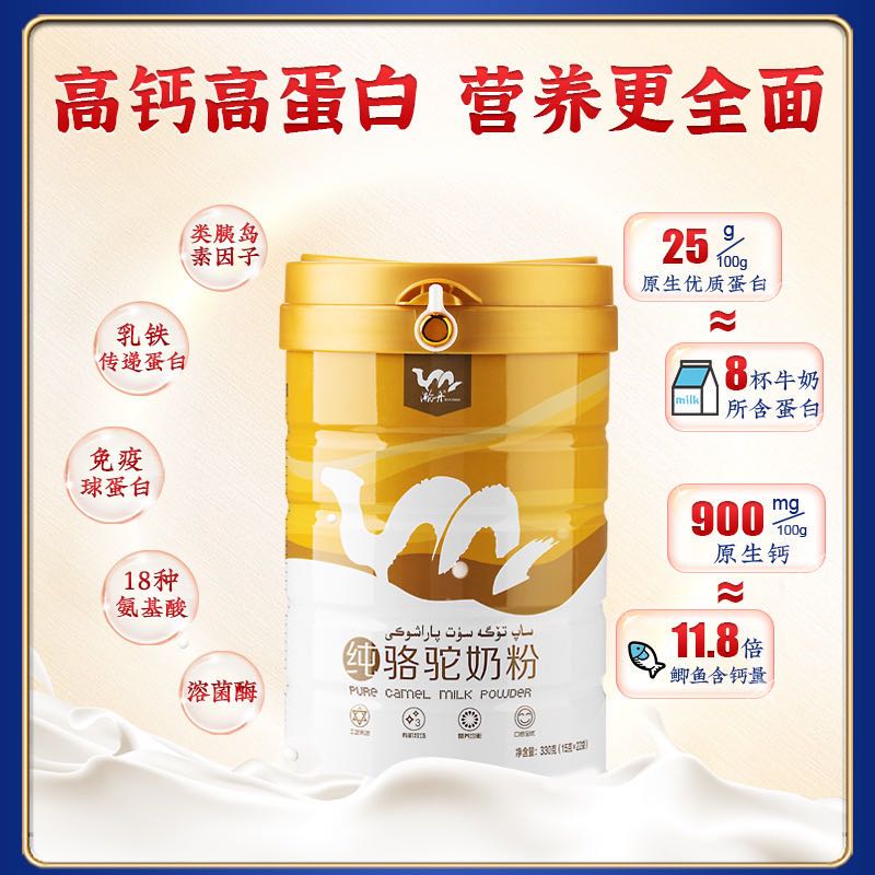 新疆源义序瀚舟纯骆驼奶粉330g罐装正宗骆驼奶粉0蔗糖成人青少年老人儿童全脂纯驼乳粉