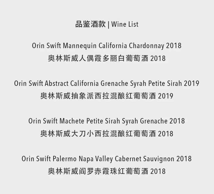 【11.17 武康门票 Wukang Ticket】跟奥林斯威一起加“夜班”品鉴会 NIGHT SHIFTS WITH ORIN SWIFT TASTING