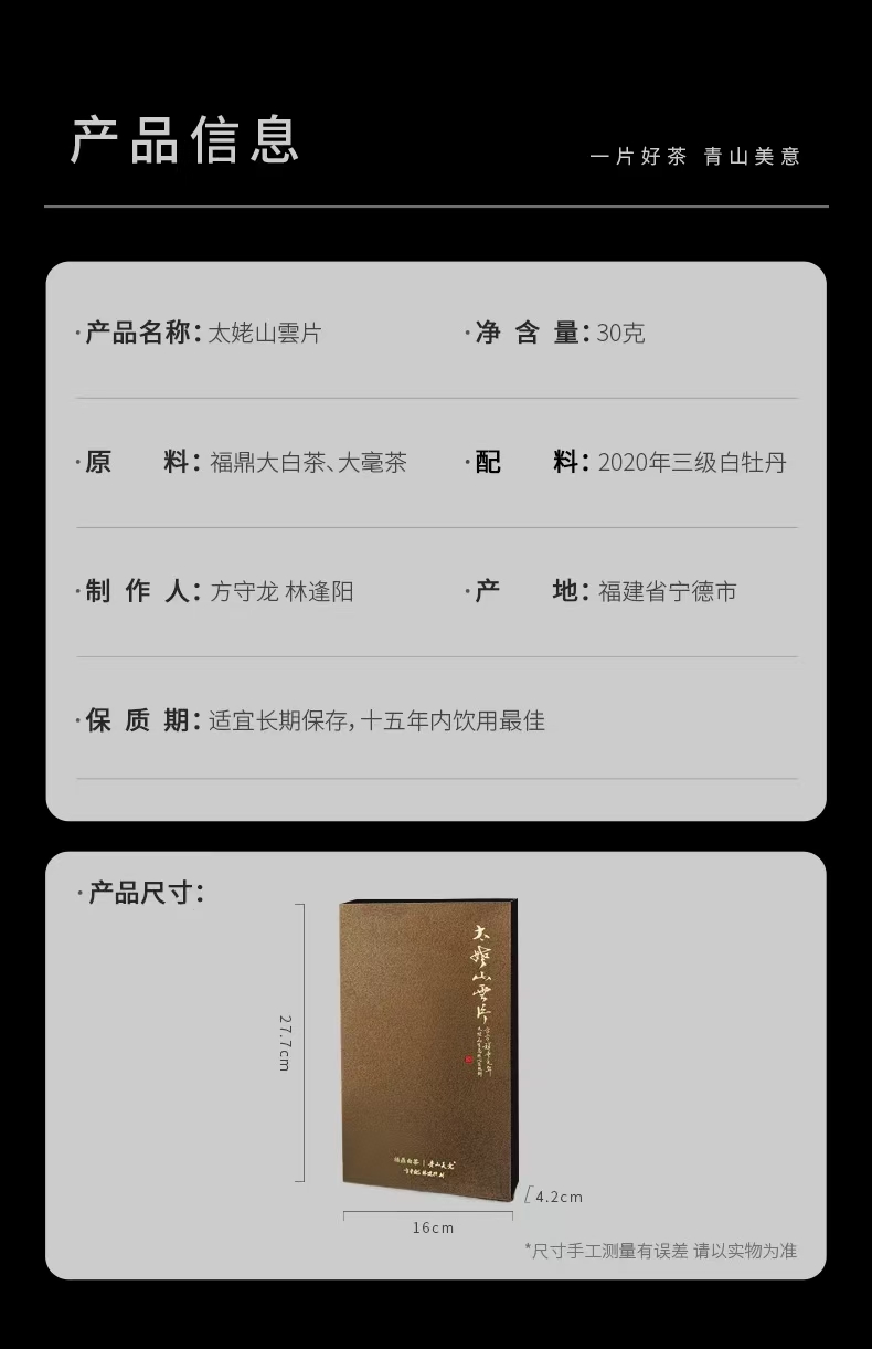 方守龙白茶2020年太姥山云片30克礼盒装[官方旗舰店正品直供]