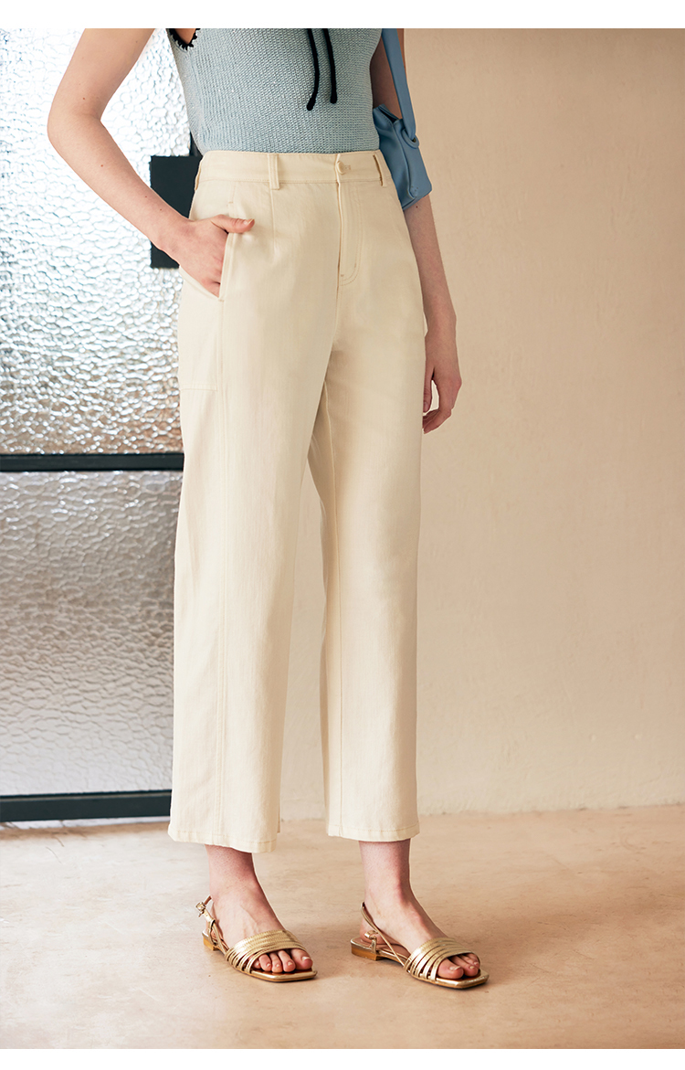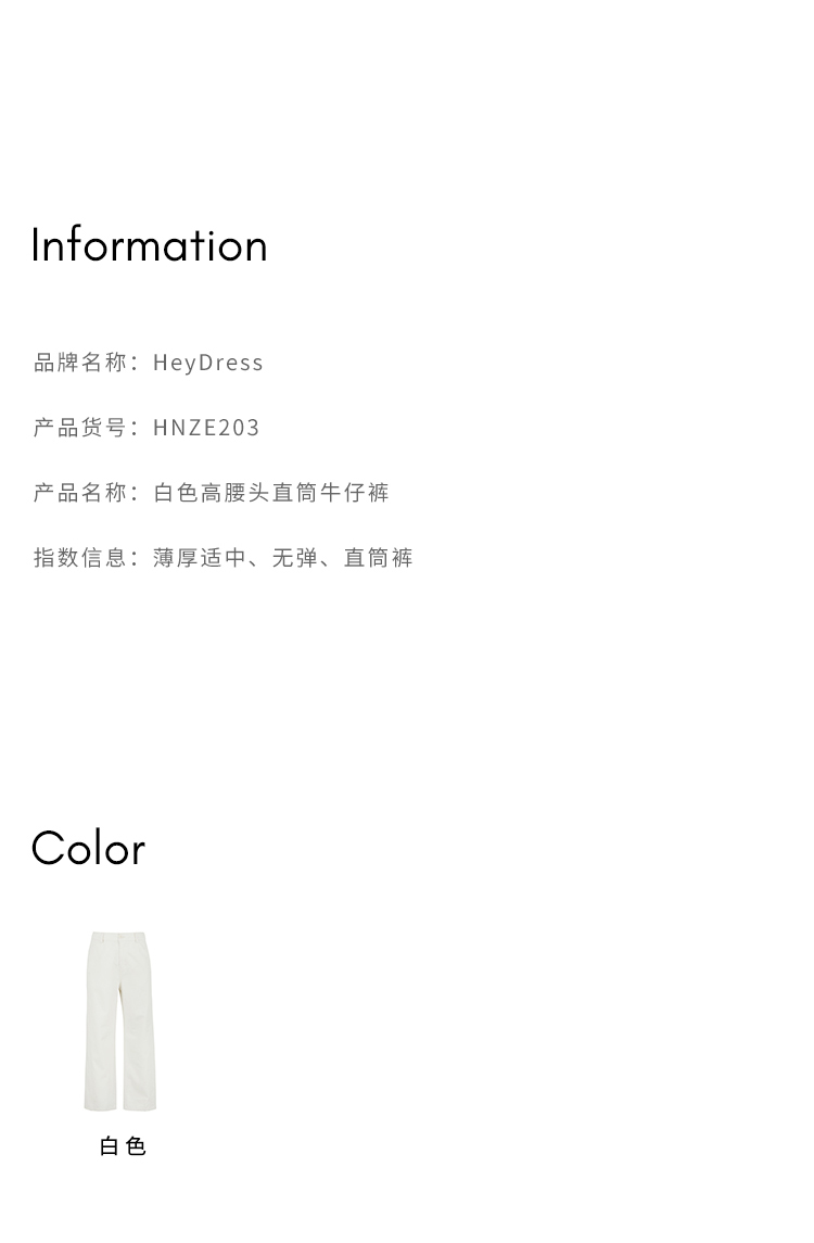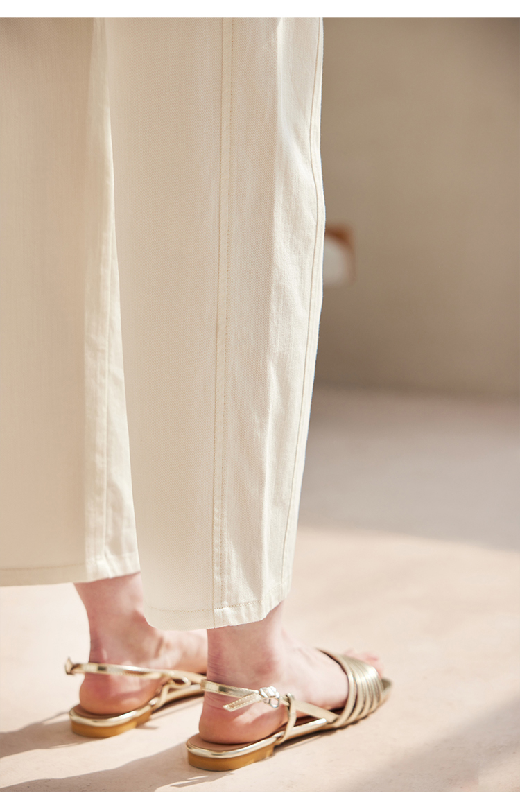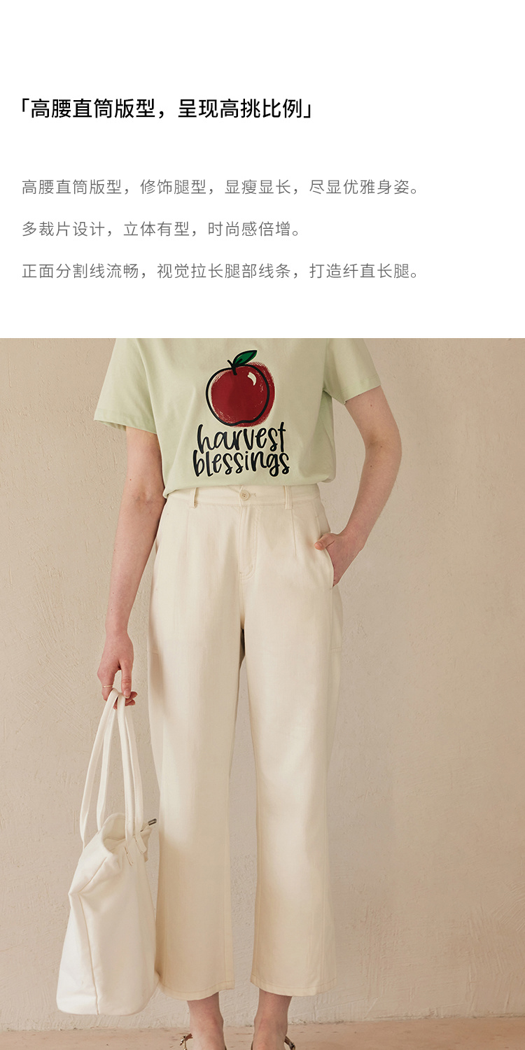 HeyDress白色斜纹牛仔裤女春夏高腰宽松直筒裤通勤百搭休闲九分裤