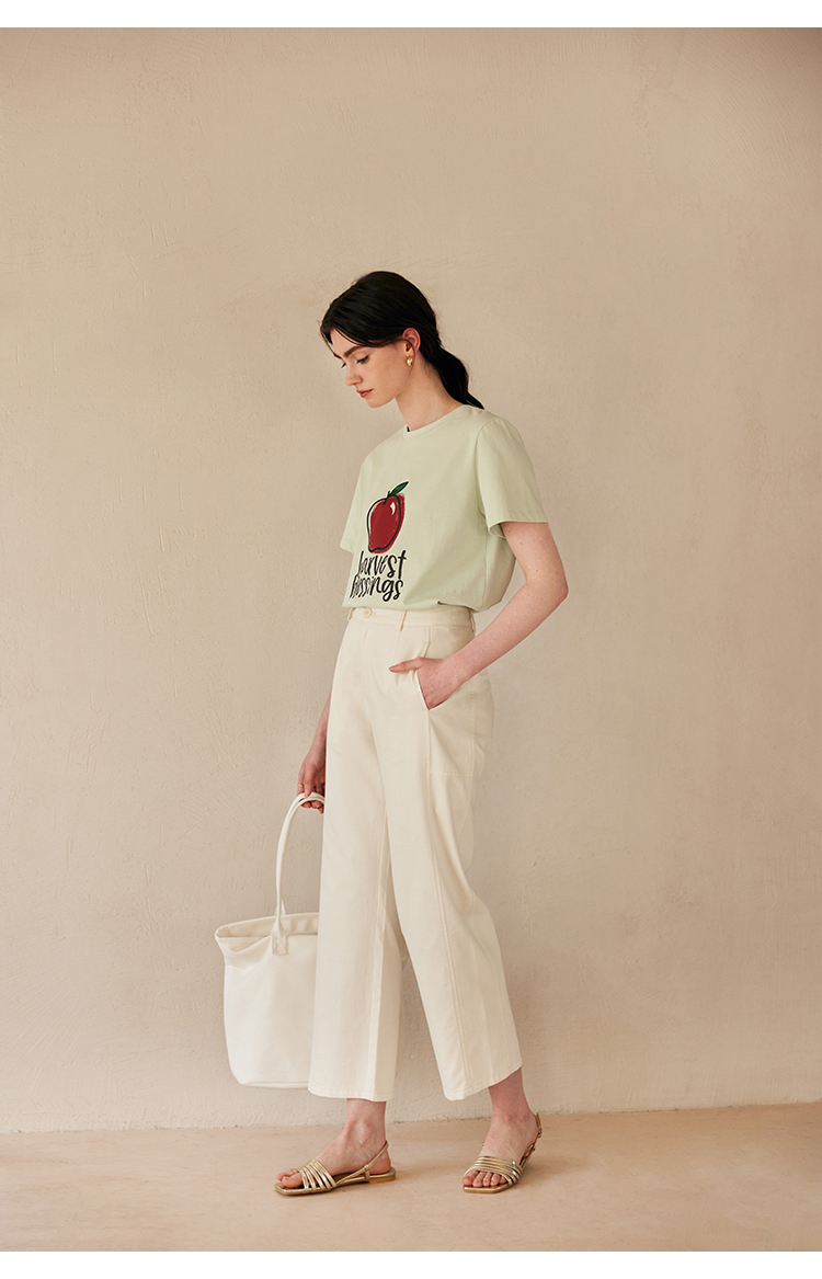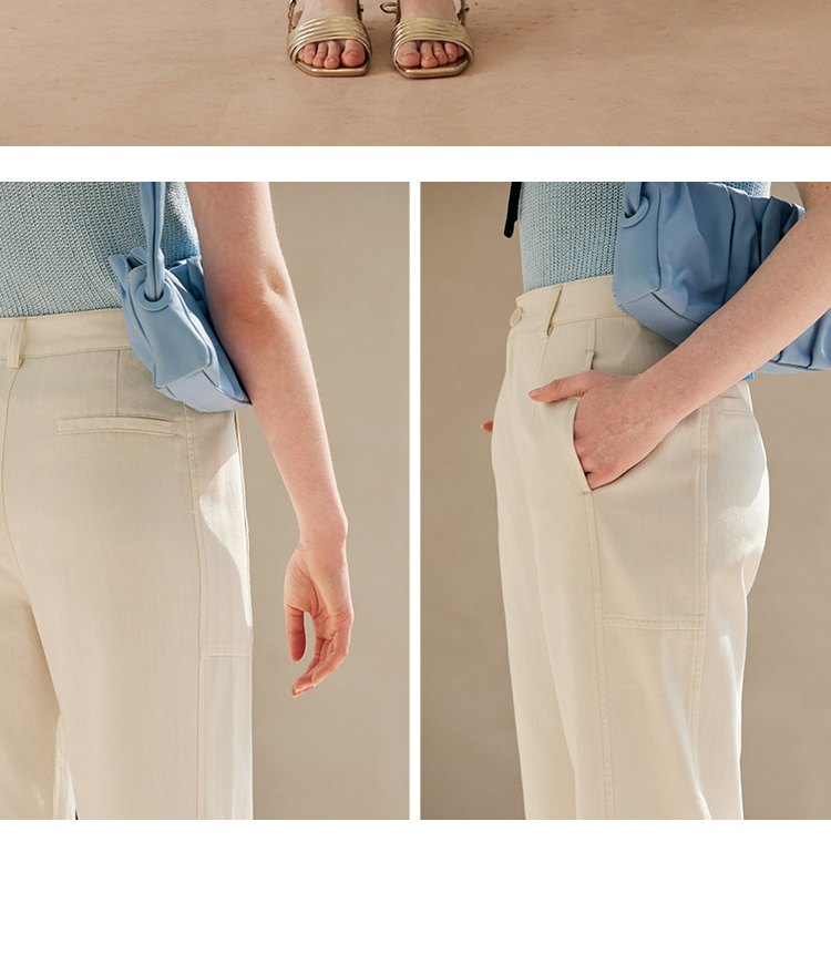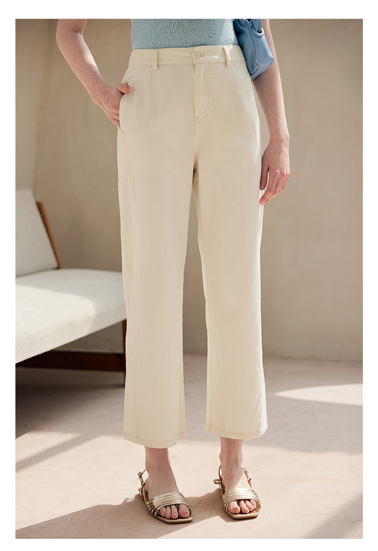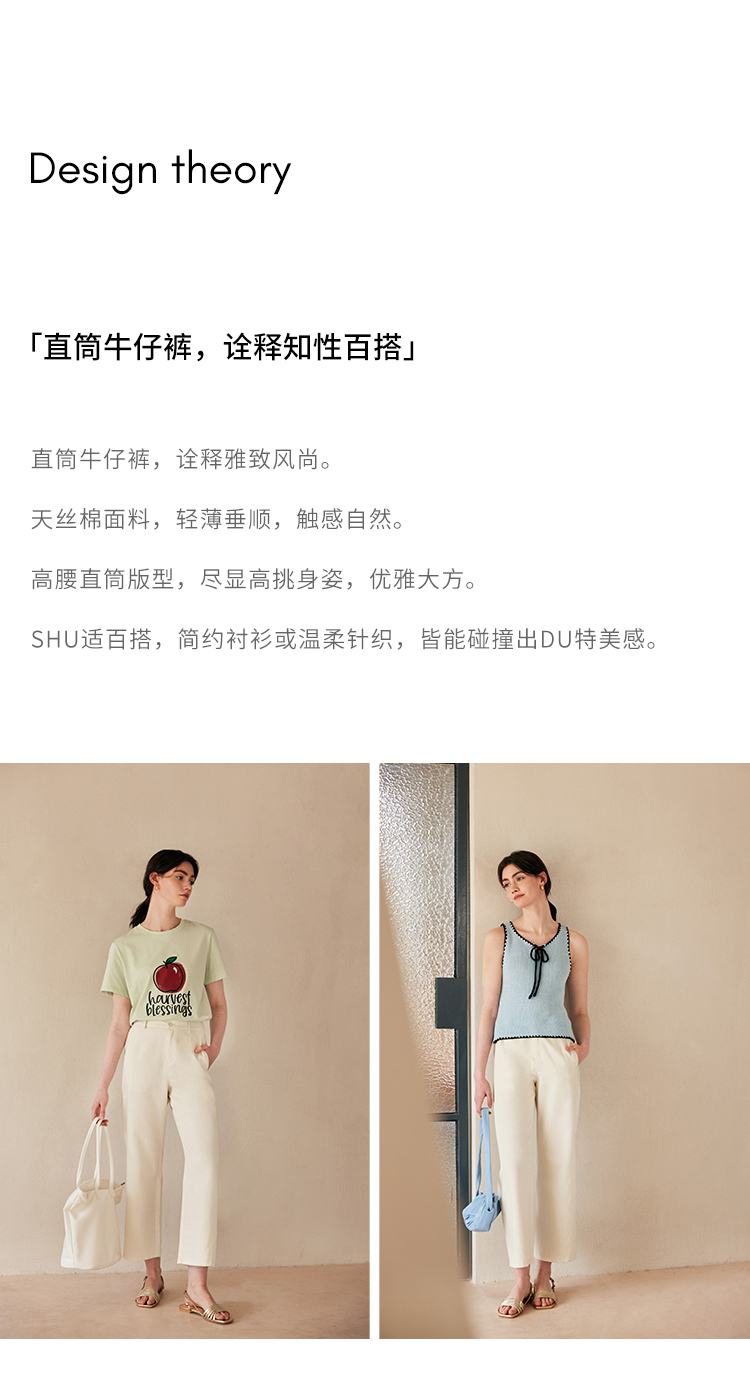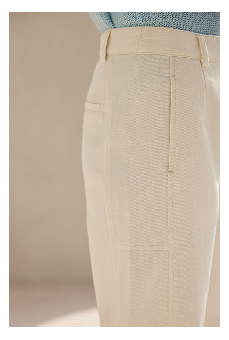 HeyDress白色斜纹牛仔裤女春夏高腰宽松直筒裤通勤百搭休闲九分裤