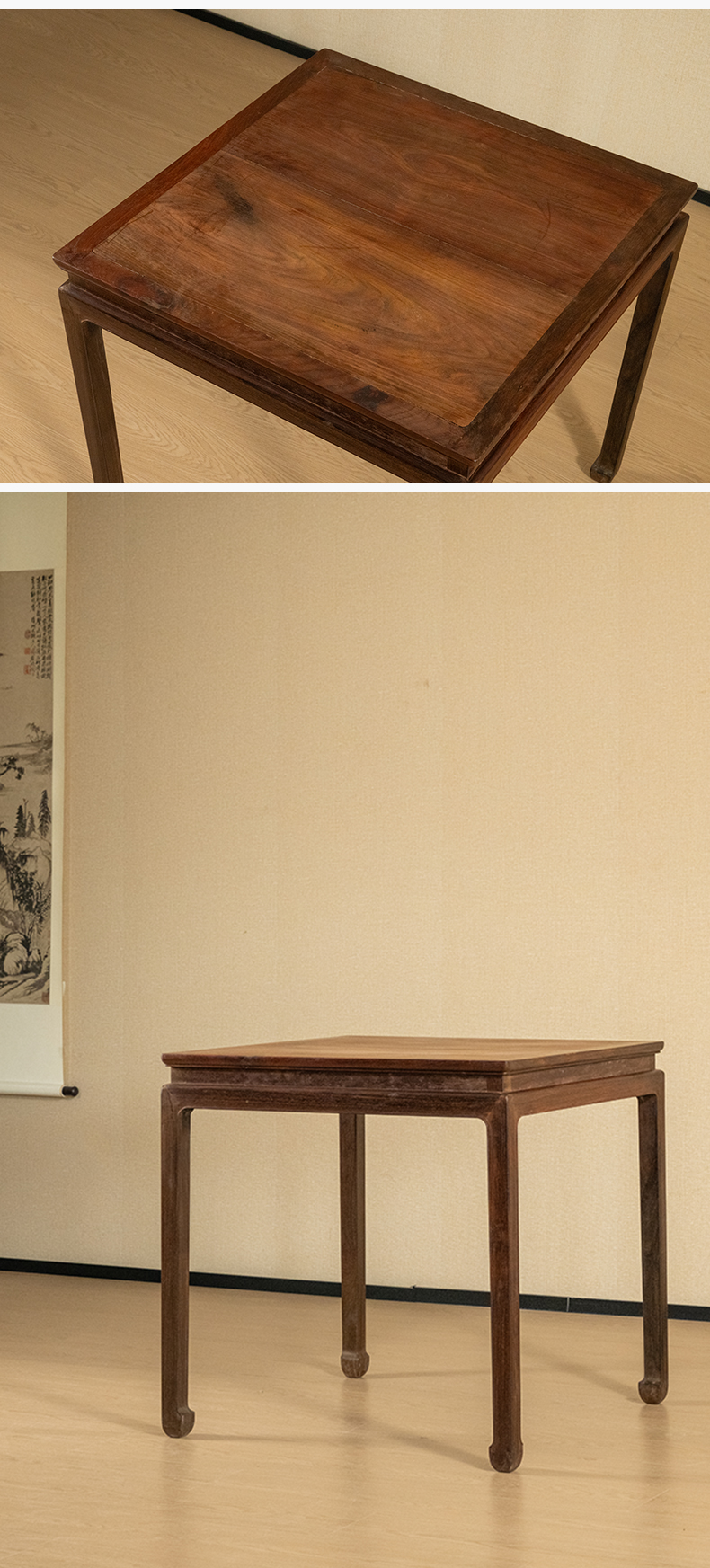 清 红木嵌瘿木百衲镶六角锦地画桌