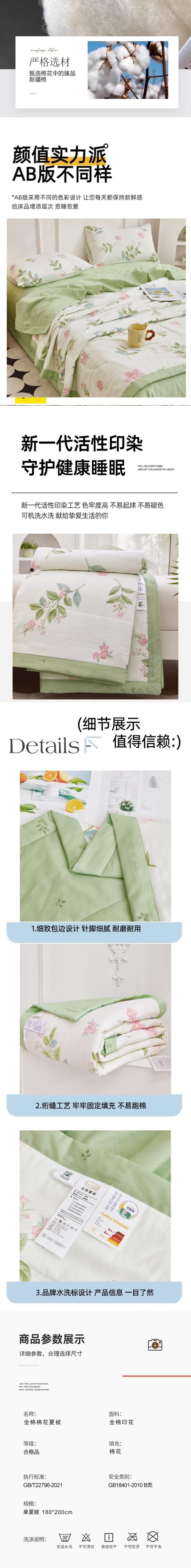 彼加曼 全棉棉花夏被-秋水薄荷 180*200cm BGM-B2519